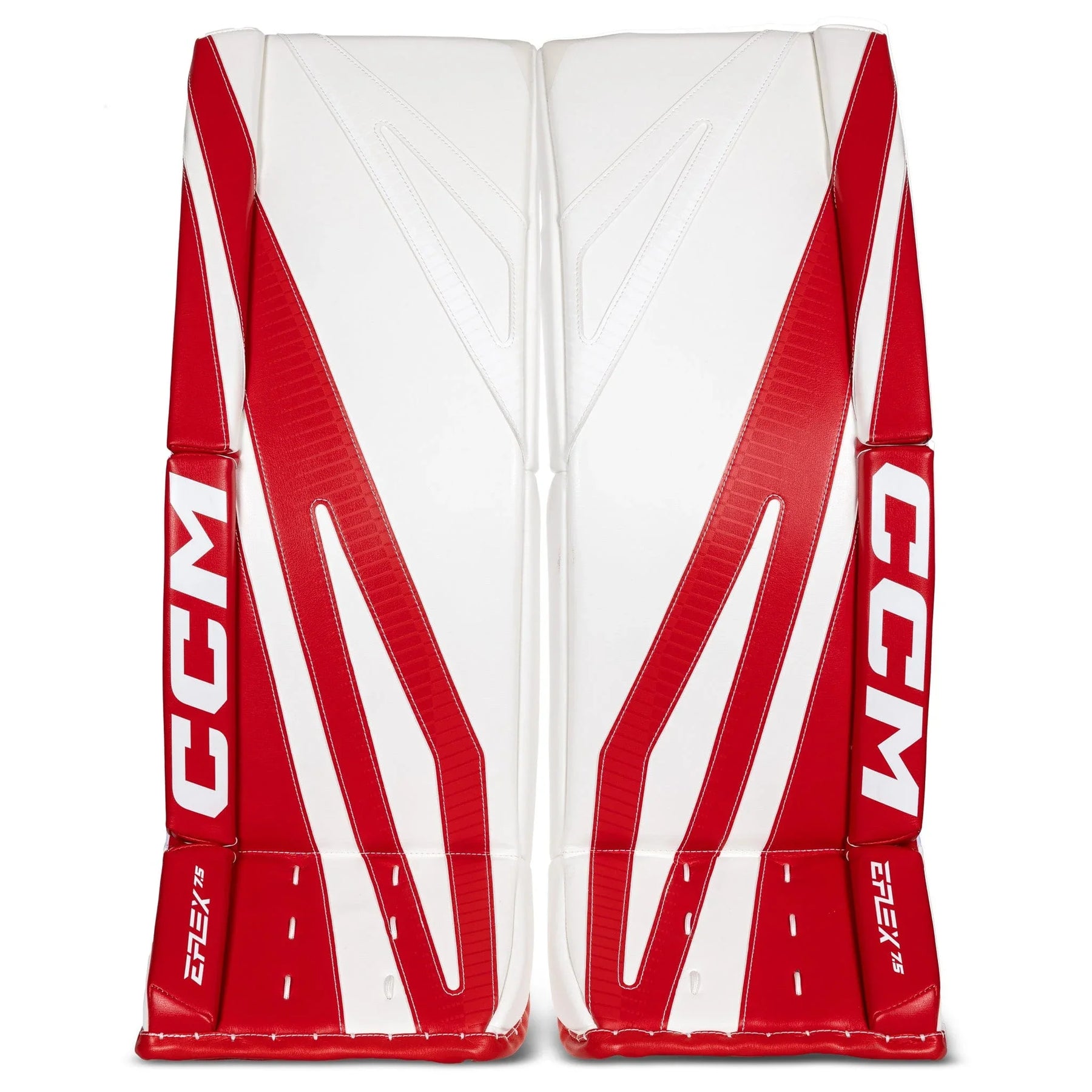 CCM has released their new EFlex line as part of the 2025 hockey season and that includes the EFlex 7.5 Leg Pads. They are equipped with many technologies such as the Dynamic Response System, Litecore technology, and an ADPTFIT strapping system. They also feature a 90° boot angle to make it easier to make contact with the ice and push off for cross-crease movements. These pads come in a variety of colors and sizes.