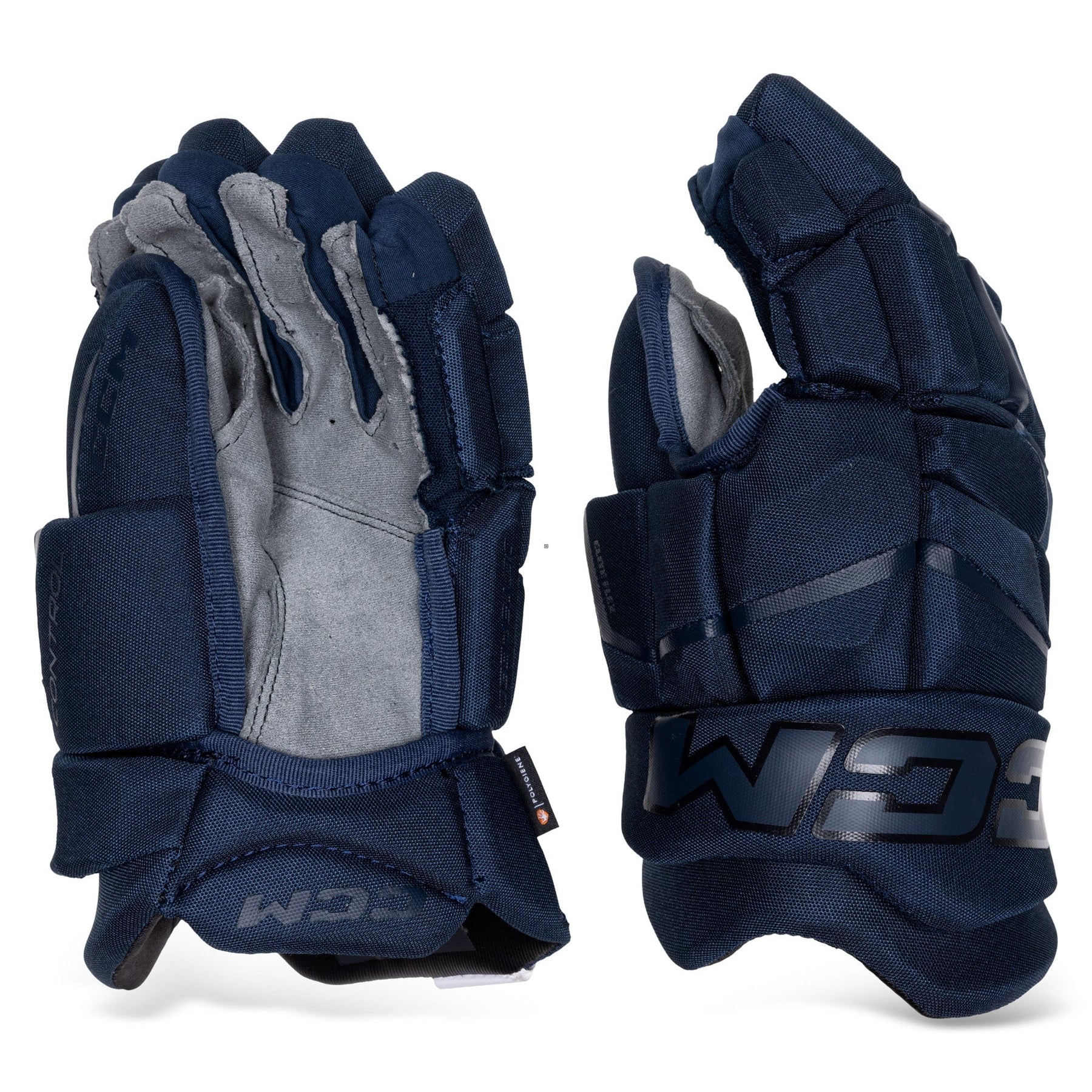 The CCM Jetspeed Control Junior Hockey Gloves are available in Black/Black, Black/Red/White, and Navy/Navy, and come in sizes 10”, 11”, and 12”.