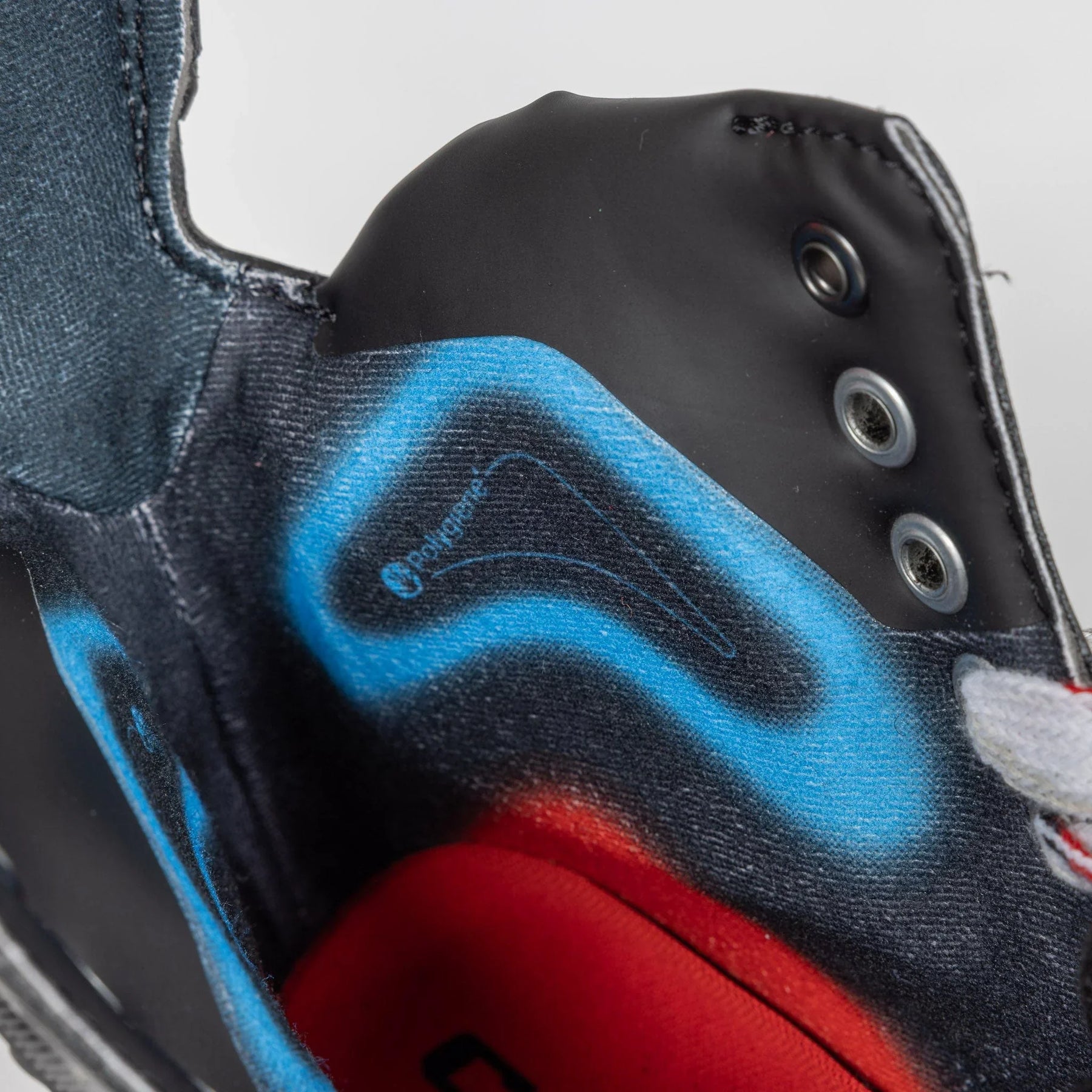 The tendon guard continues to feature flexibility to increase the overall range of motion of the boot. The tendon guard flexes slightly forward and back to not limit the skater's stride strength.