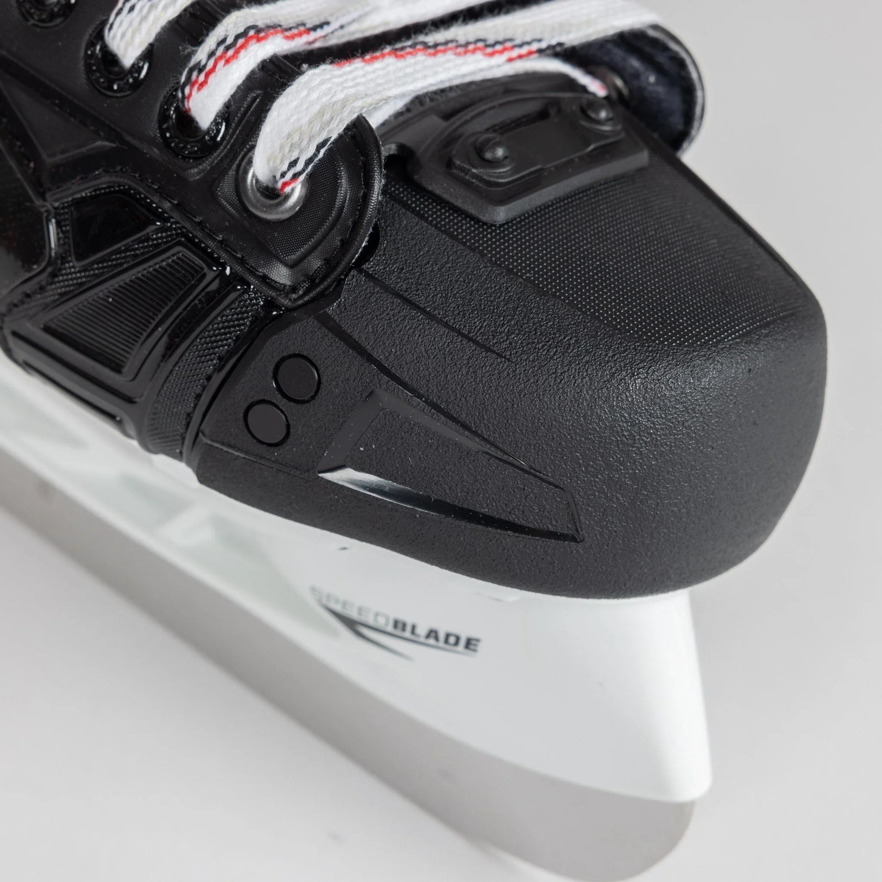 The quarter package on the Source for Sports exclusive Jetspeed Control features the One-Piece boot made with RFM Composite. The one-piece design reduces the empty space within the boot for a better fit to maximize the energy transfer from the body though the skate and onto the ice.