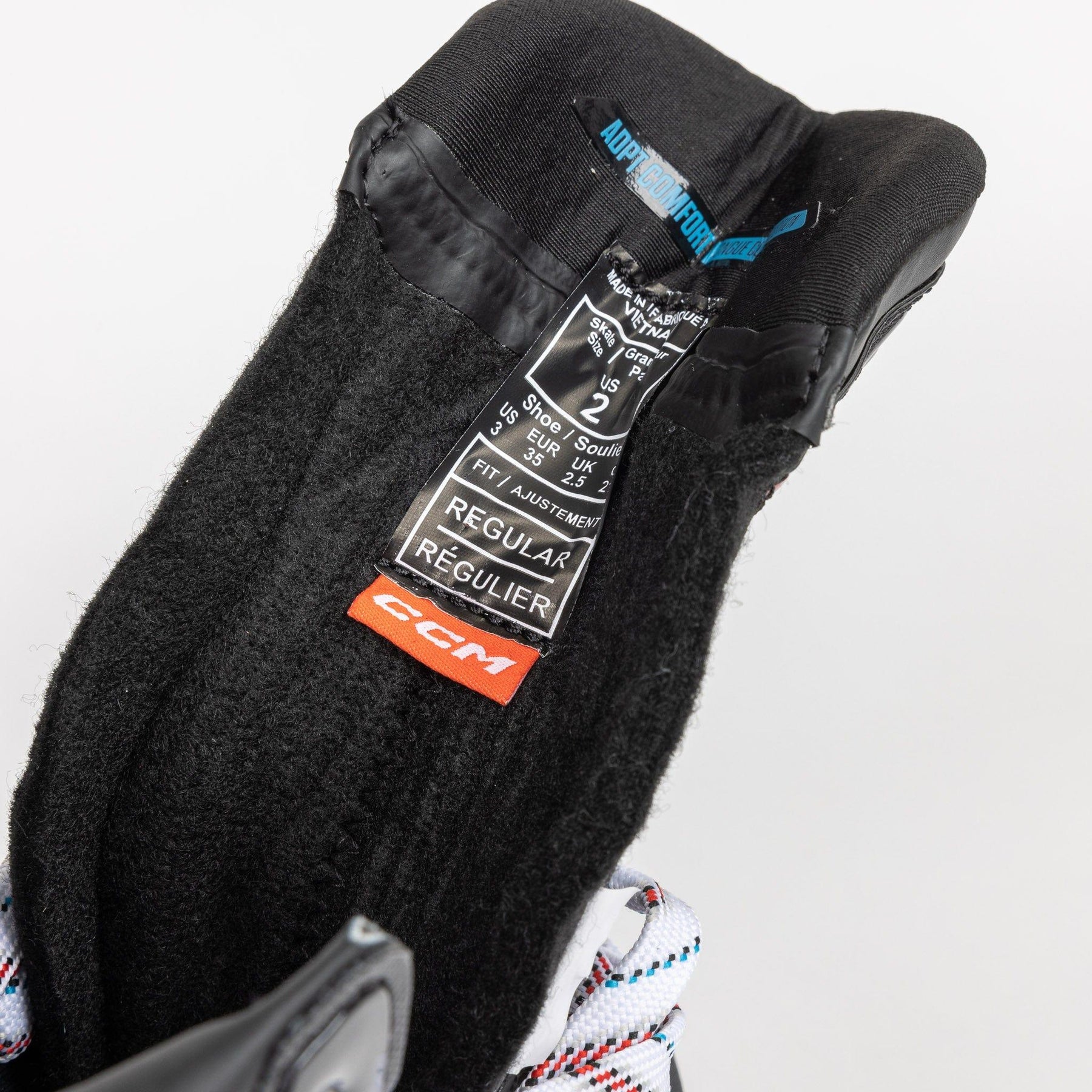 The skates feature a TotalDri Pro liner with Polygiene and treatment, ensuring high-performance moisture-wicking capabilities to keep feet dry and the skates light. The liner also provides superior odor protection. The footbed is equipped with a molded CCM Ortholite Ultra with ADPT Memory Foam, providing ultra-lightweight comfort, a molded fit, and heel grip support for an elevated skating experience. An extra layer of ADPT Memory Foam is included to further enhance those skating capabilities. The ankle padding made of memory foam and a Seamless Comfort design complements the other elements of the skate, with multi-density foam pads wrapping seamlessly and anatomically around your foot. This ensures a customized fit coupled with unparalleled comfort throughout your game.