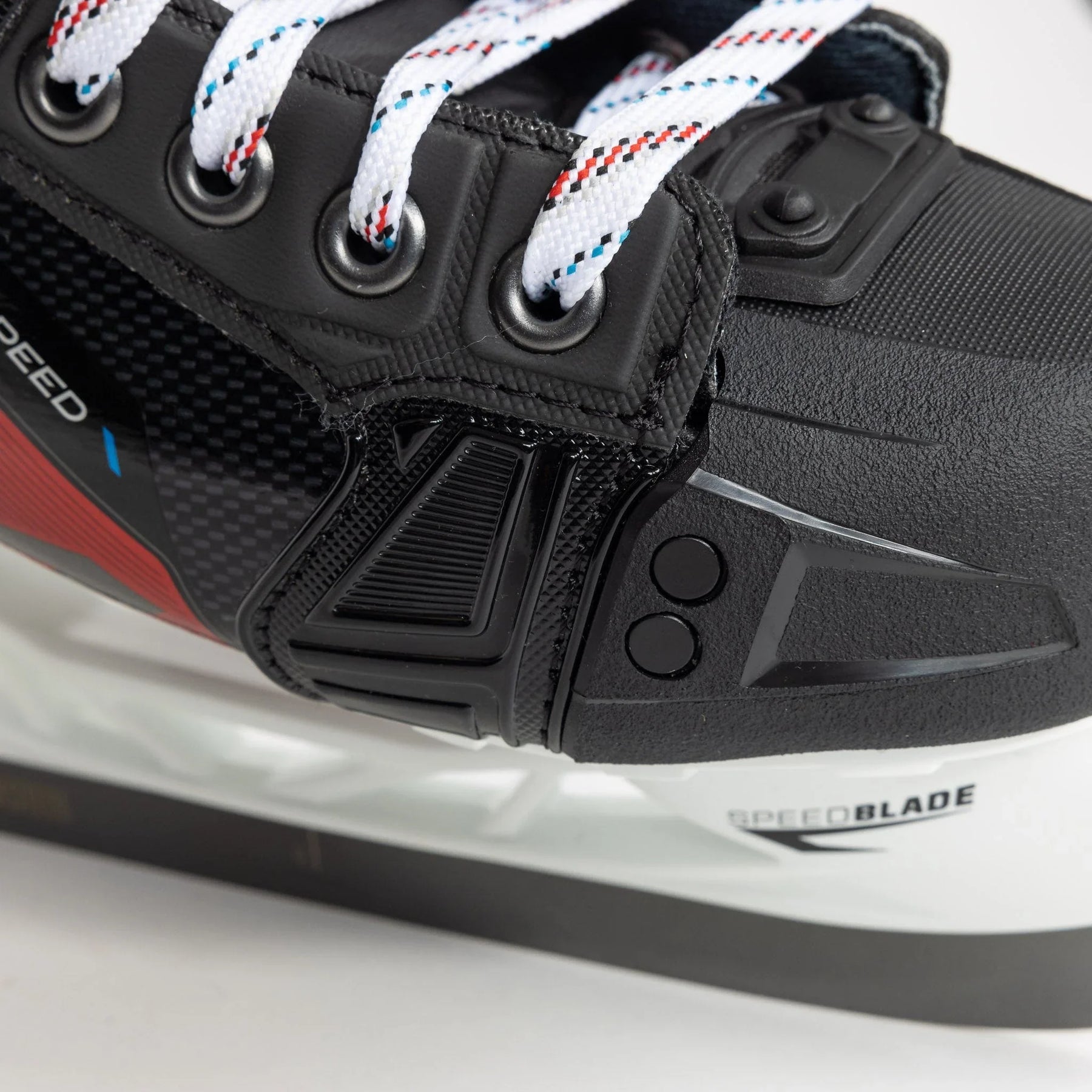 The innovative ADPT comfort foam tongue delivers unmatched fit and comfort. The tongue features a metatonic fit, lightweight molded core, and ADPT memory foam that seamlessly wraps around your foot, ensuring an optimal and personalized fit. Additionally, the tongue's Flexmotion lace-bite design not only enhances forward flexion but also provides added protection, allowing you to skate with confidence and agility.