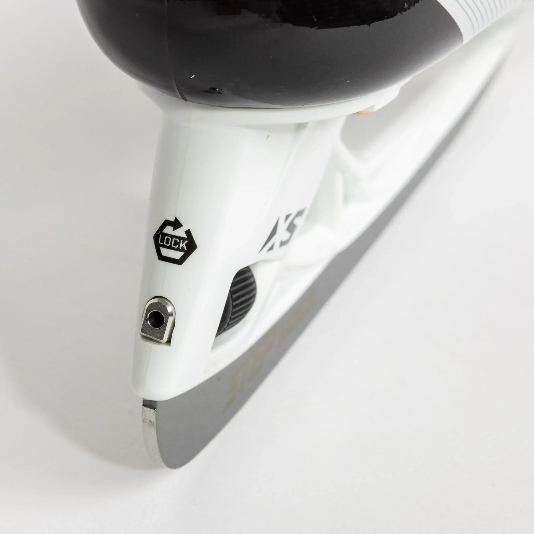 The Speedblade XS holder is mounted on the FT6 Pro skates for a sturdy base. This year, CCM incorporates an enhanced dial to make it even easier to switch runners in a pinch. This dial is standard at the NHL level.