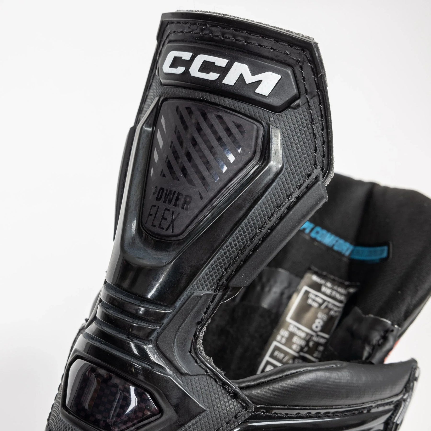 The skates feature a TotalDri Pro liner with Polygiene and treatment, ensuring high-performance moisture-wicking capabilities to keep feet dry and the skates light. The liner also provides superior odor protection. The footbed is equipped with a molded CCM Ortholite Ultra, providing lightweight comfort and heel grip support for an elevated skating experience.