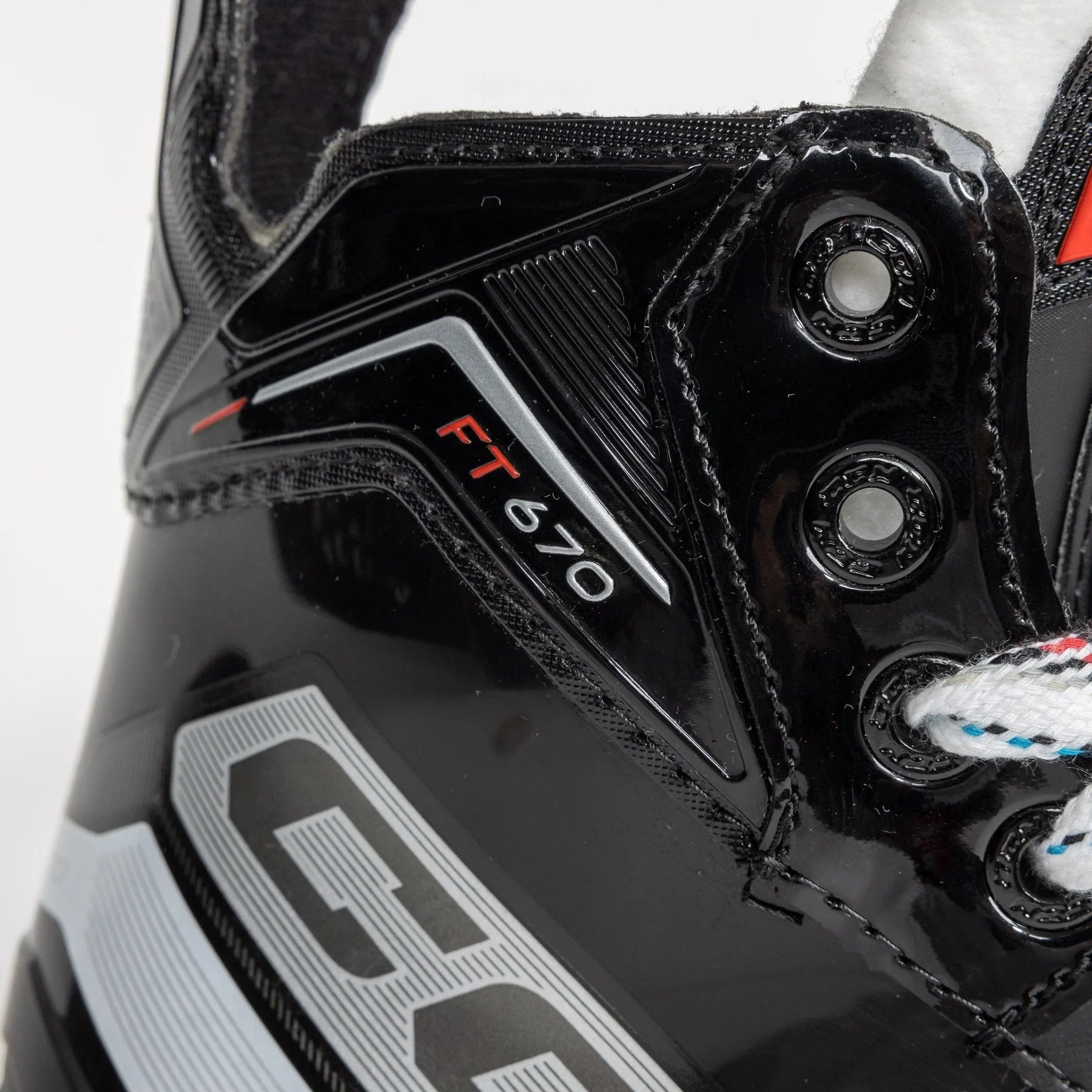 The FT670 skates feature a one-piece boot construction with a good blend of performance and durability. The one-piece boot design enhances the efficiency of direct energy transfer from each stride to the ice, resulting in improved power and speed. Moreover, it provides a snug fit that promotes faster and more forceful strides, further amplifying the player's on-ice performance.