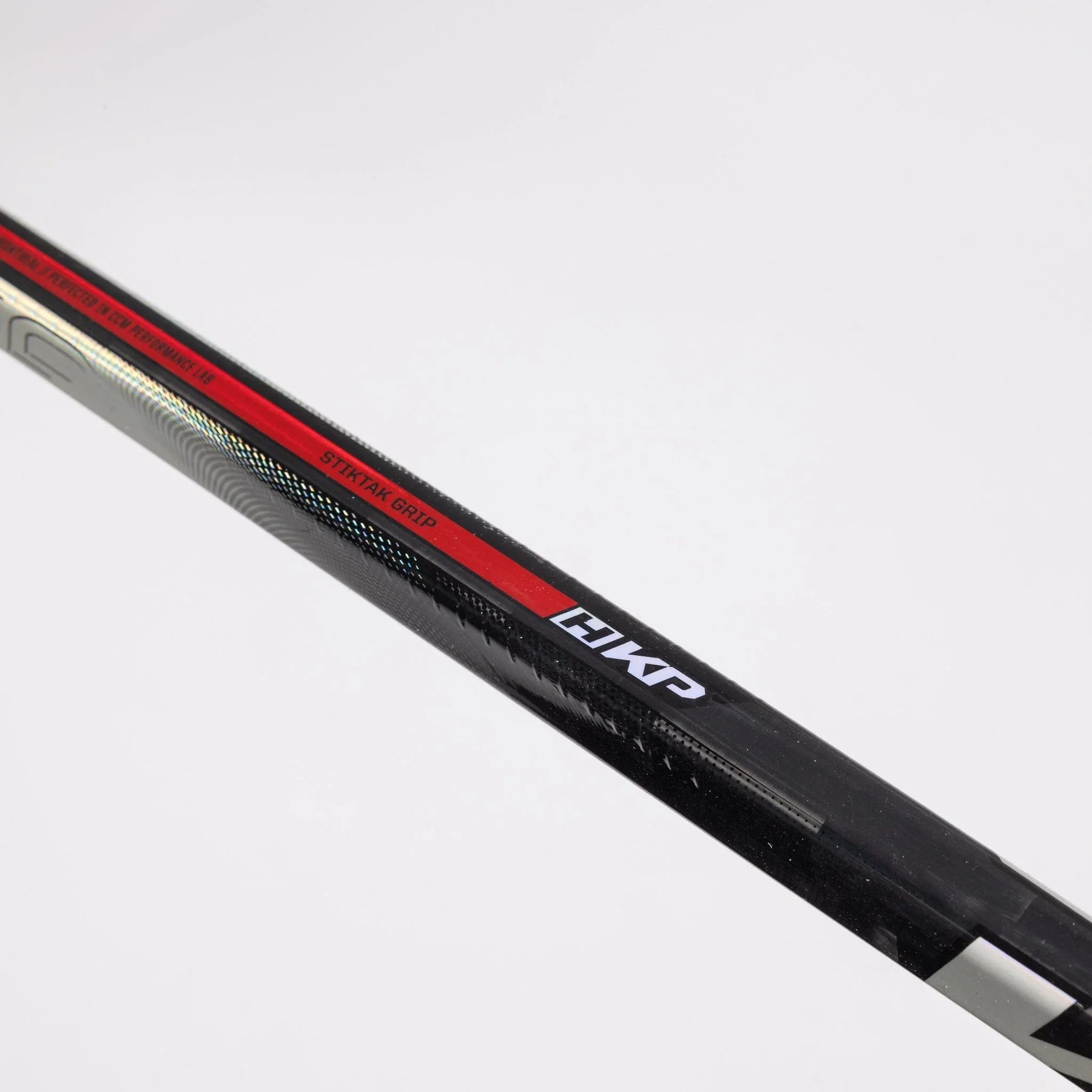 The Jetspeed line uses a hybrid kick point, which combines the benefits of both a low and high kick point. It is designed to provide a quick release for wrist and snap shots, while also delivering more power for slap shots. The hybrid kick point is achieved by using a combination of carbon fibres with different flex properties in the lower and upper parts of the shaft. The lower part of the shaft uses stiffer carbon fibres, creating a low kick point for quick releases. The upper part of the shaft uses more flexible carbon fibres, creating a higher kick point for increased power and accuracy on slap shots.