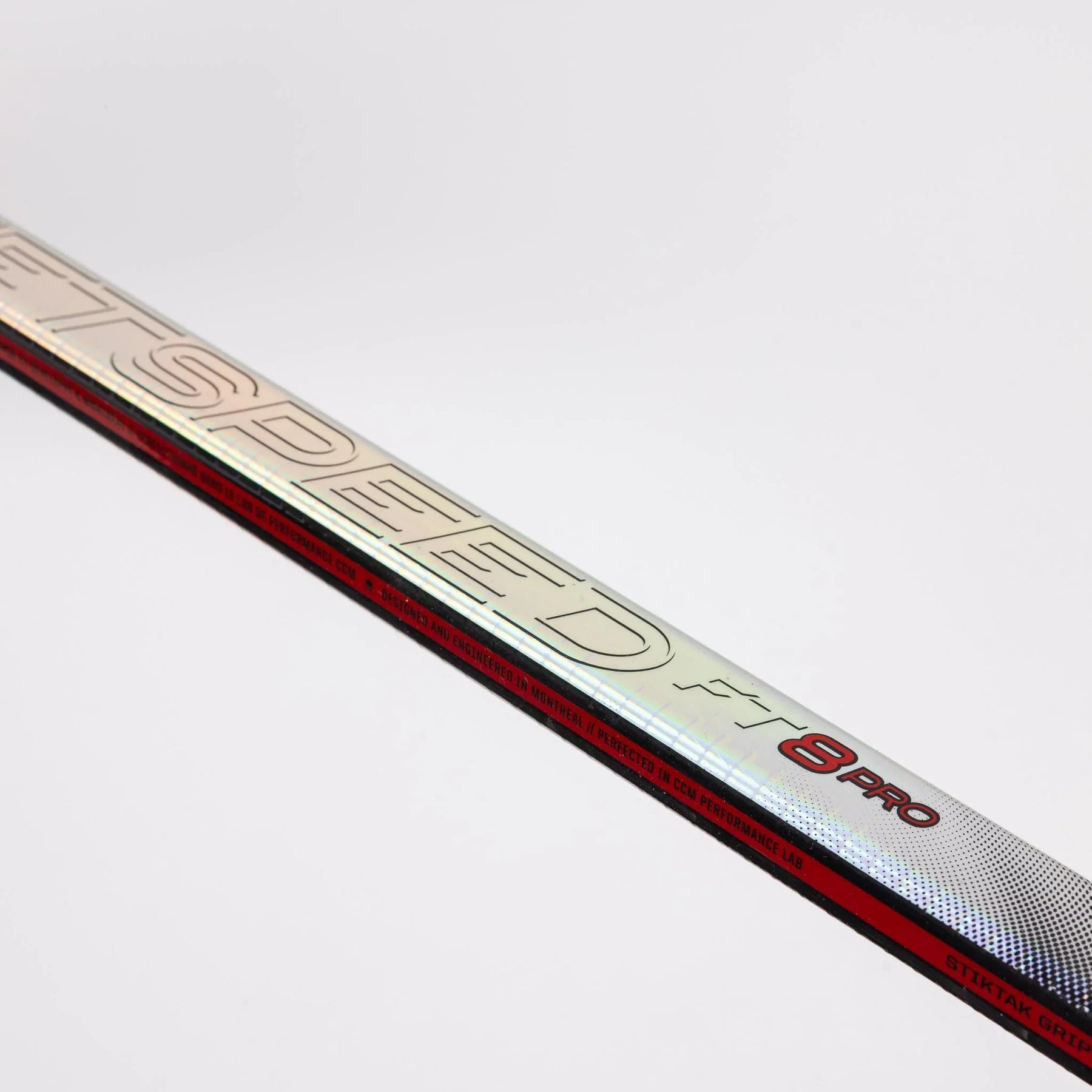 The CCM FT8 Pro stick features a holographic finish which makes the colors on the stick stand-out in an all-new way. The CCM logo is in Chrome which makes it stand out, while the colors in the upper shaft stand out with the holographic design.