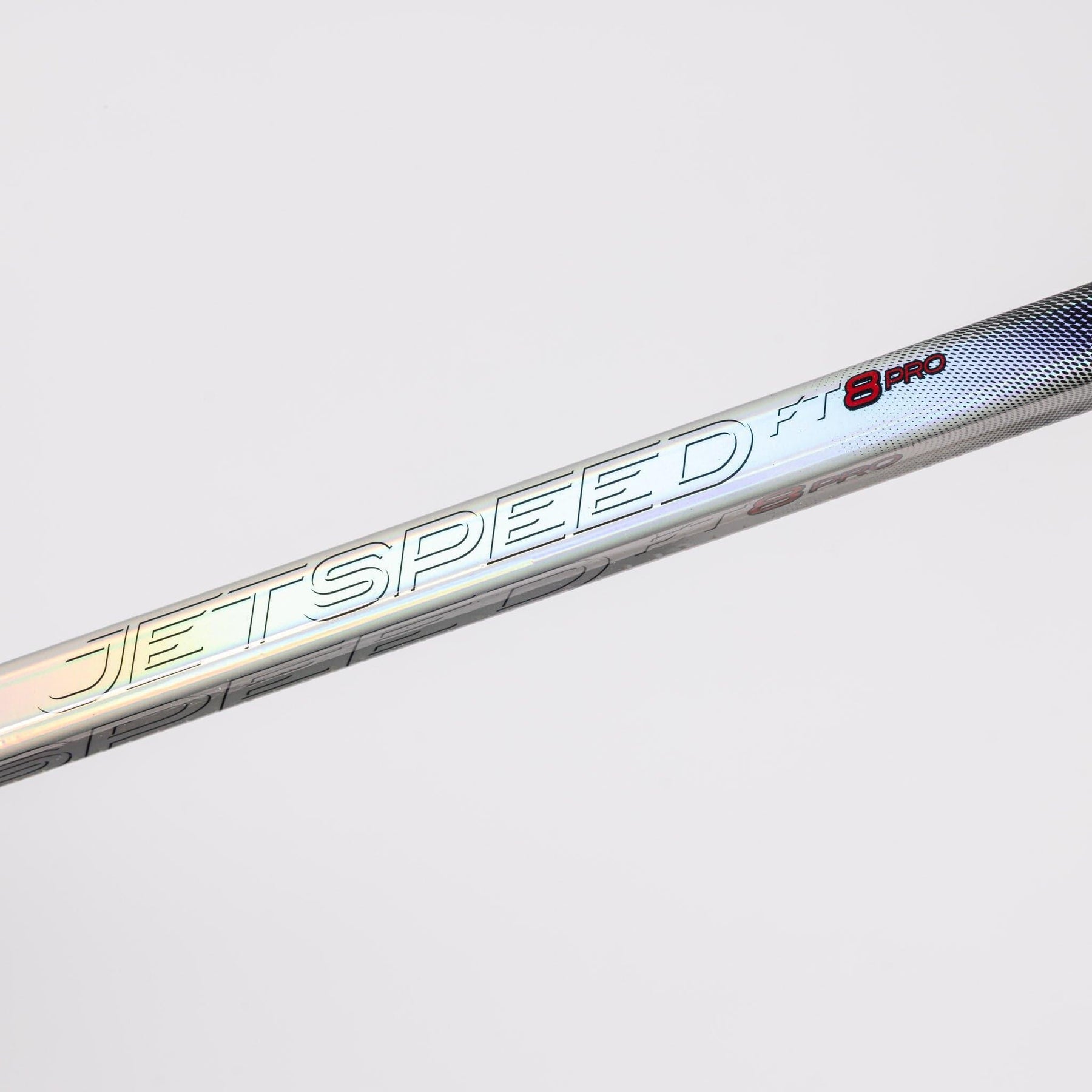 Boasting a new shaft designed with a blend of aluminum and carbon fiber layers, the Jetspeed FT8 Pro pushes durability levels even further than before, while still managing to reduce the weight of the stick. It also brings a completely reengineered blade that has been developed with the same theories as the stick's profile, allowing it to create a different local stiffness. The Soft-Stiff EVO blade uses a very soft heel for enhanced stickhandling and passing that evolves into a stiffer toe for excellent shooting performance, enabling players to excel in all aspects of the game.