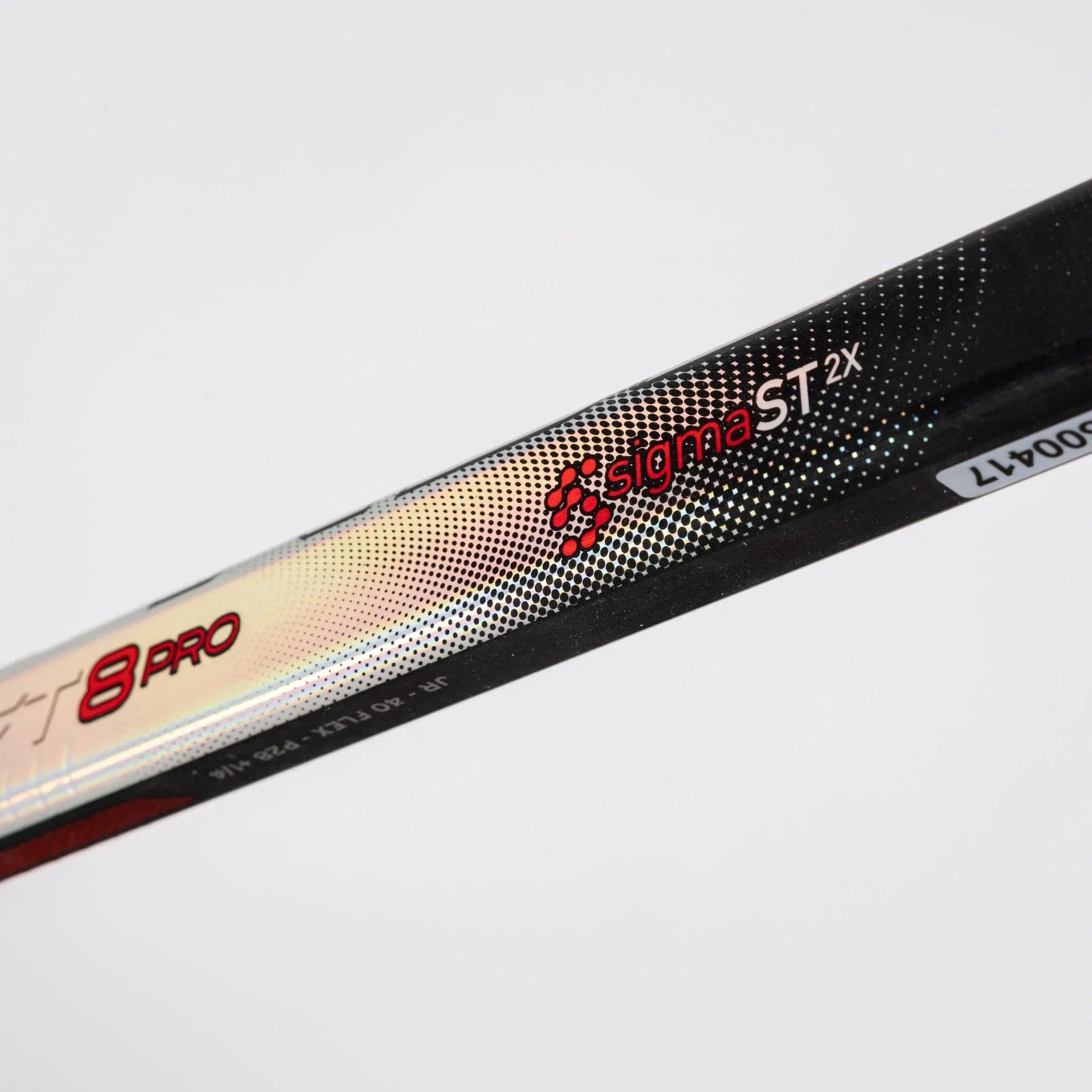 When creating the blade on the FT8 Pro hockey stick, CCM implemented a new soft-stiff evo blade with helicoid technology. This is a new generation of CCM blade that plays like a mix of the FT6 Pro stiff toe and the FT7 Pro shorter heel to provide players with optimal puck feel and excellent shooting performance. There is also Sigma ST2X carbon weave spread tow in the shaft and blade.