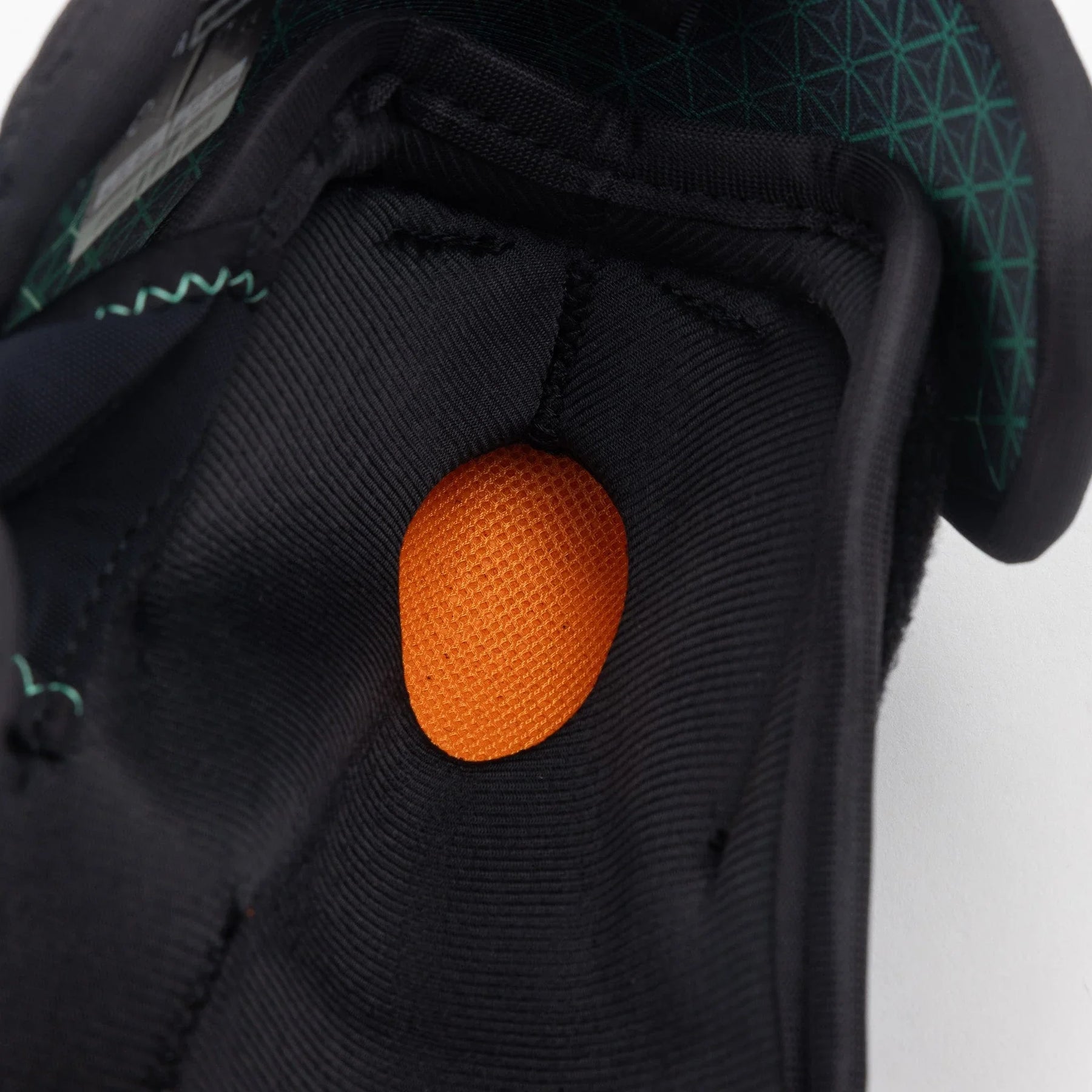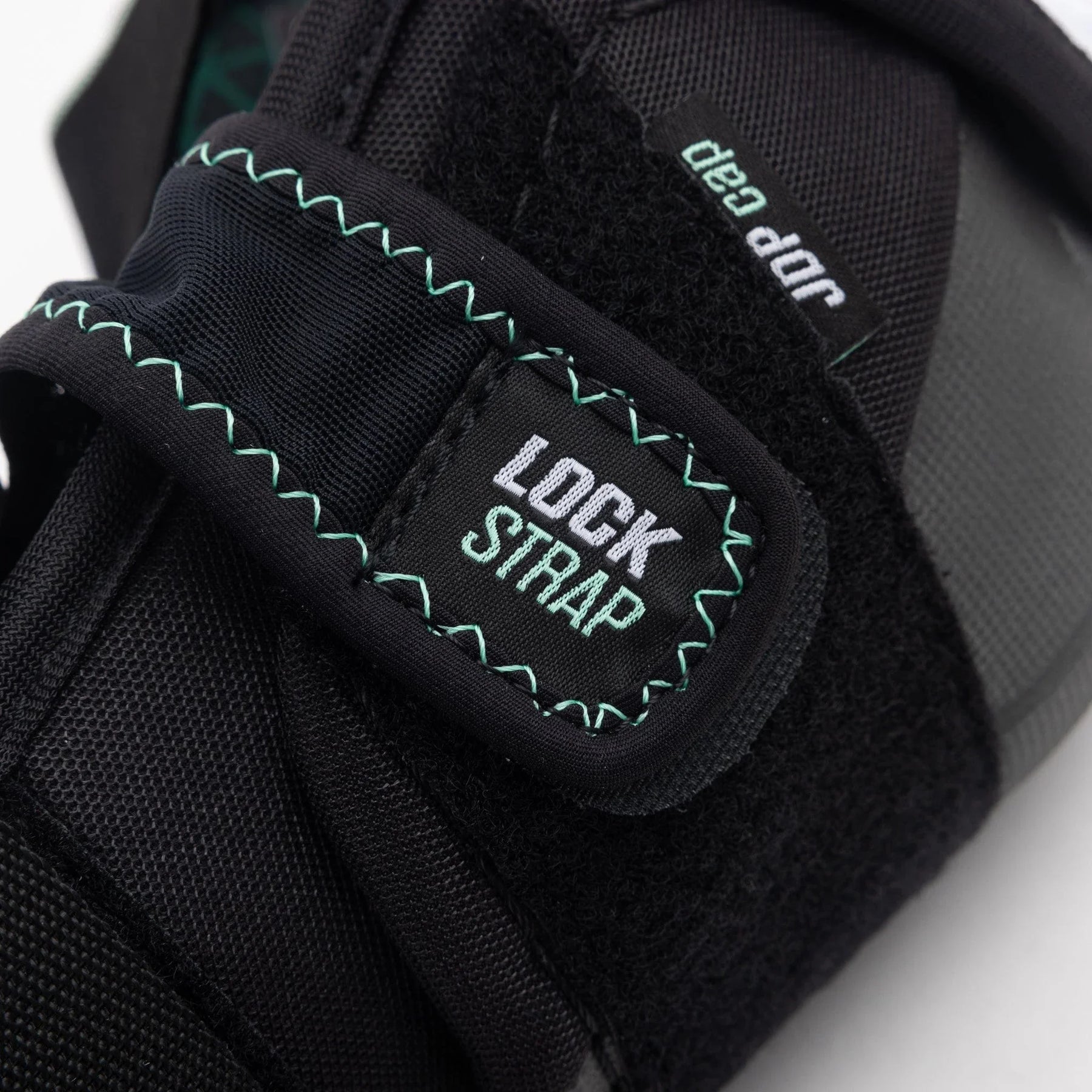 The comfort strapping system allows for flexible and breathable middle lock strap + nylon forearm strap with extended landing zones for optimized adjustability and fit.