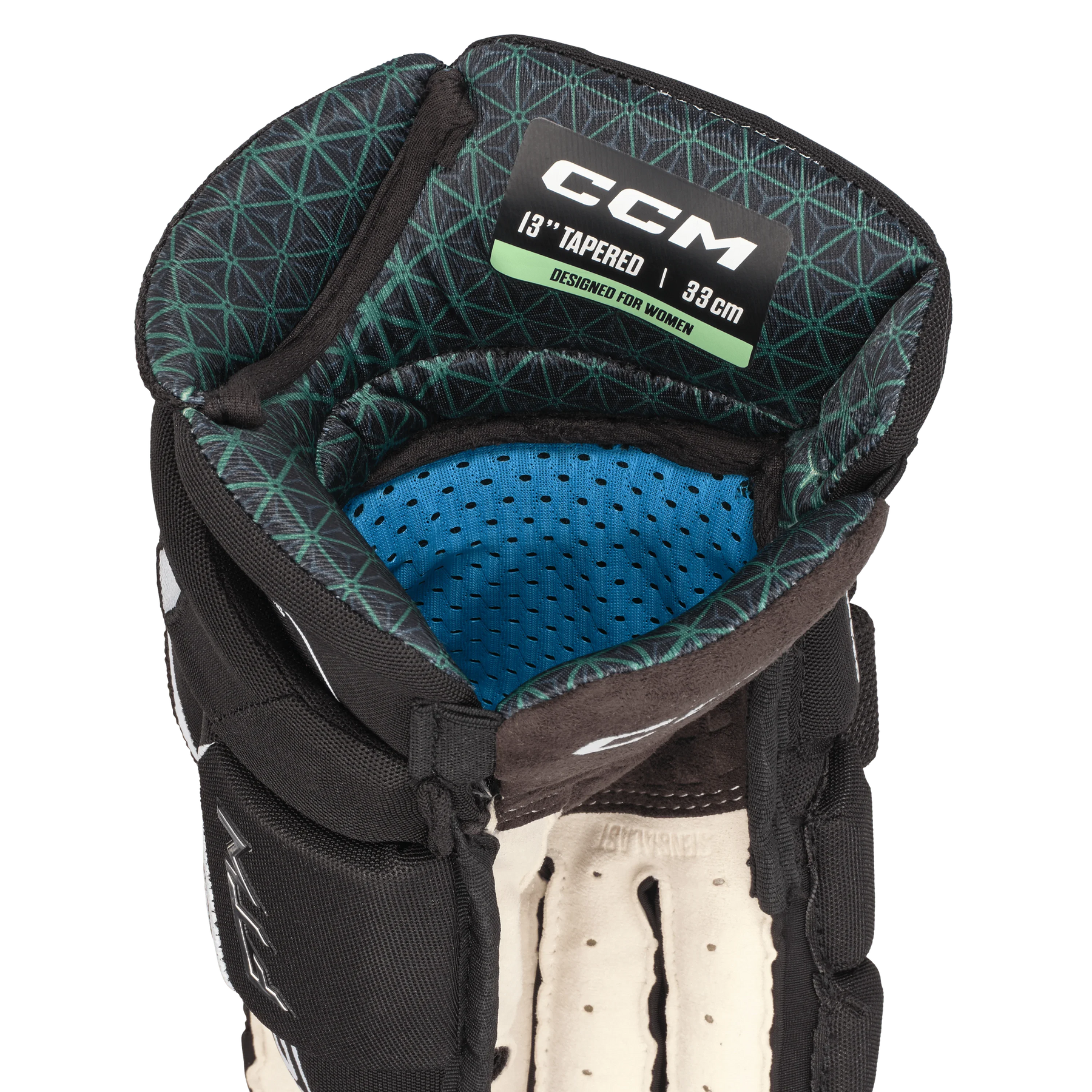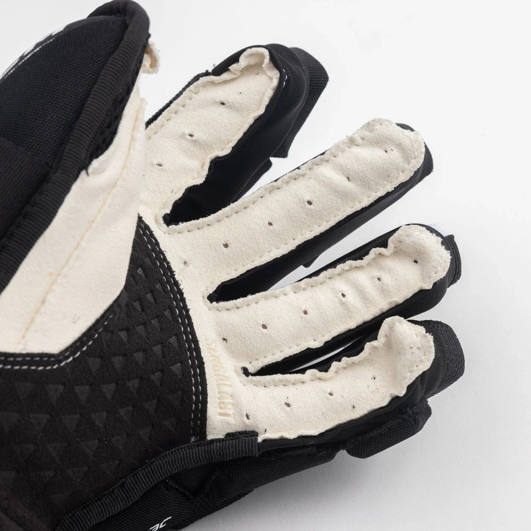 The Sensalast Palm+ reinforcement with embossed texture has been treated with polygiene odorcrunch, providing the palm with a soft feel and a seamless palm-to-cuff transition inside & out. Combined with the pro-feel palm, this glove allows ultimate stickhandling with high-caliber durability and grip.