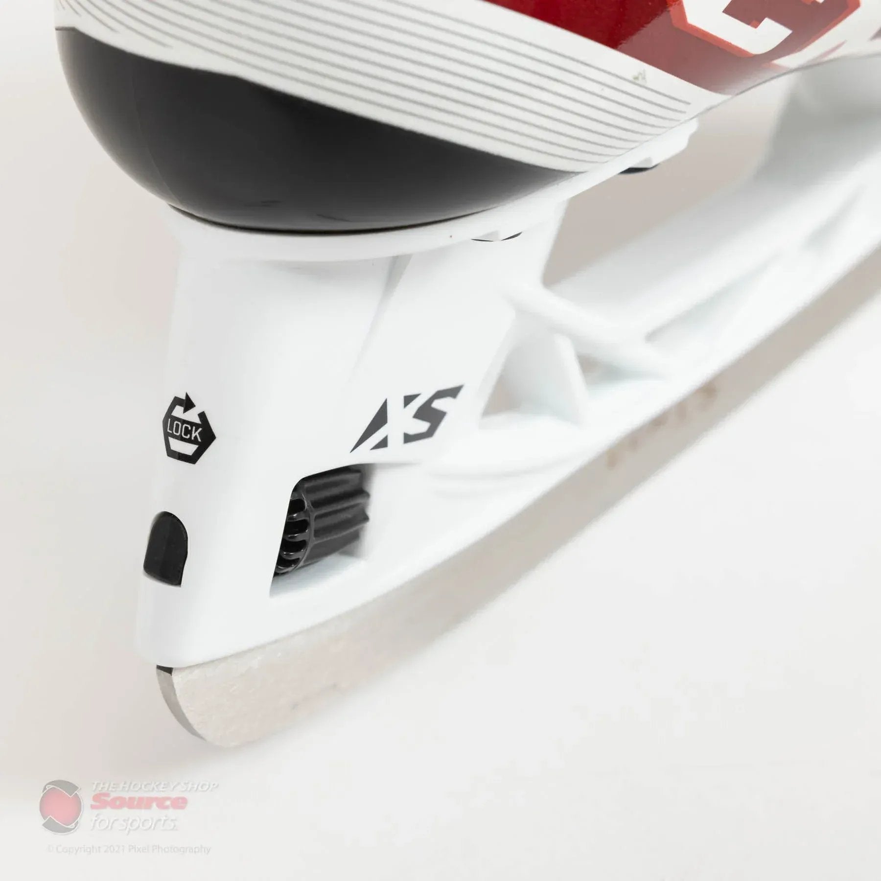 The CCM Speedblade XS is mounted on the Jetspeed Shock skates, offering the sturdy quick release system that has become a staple amongst the top end players around the world.