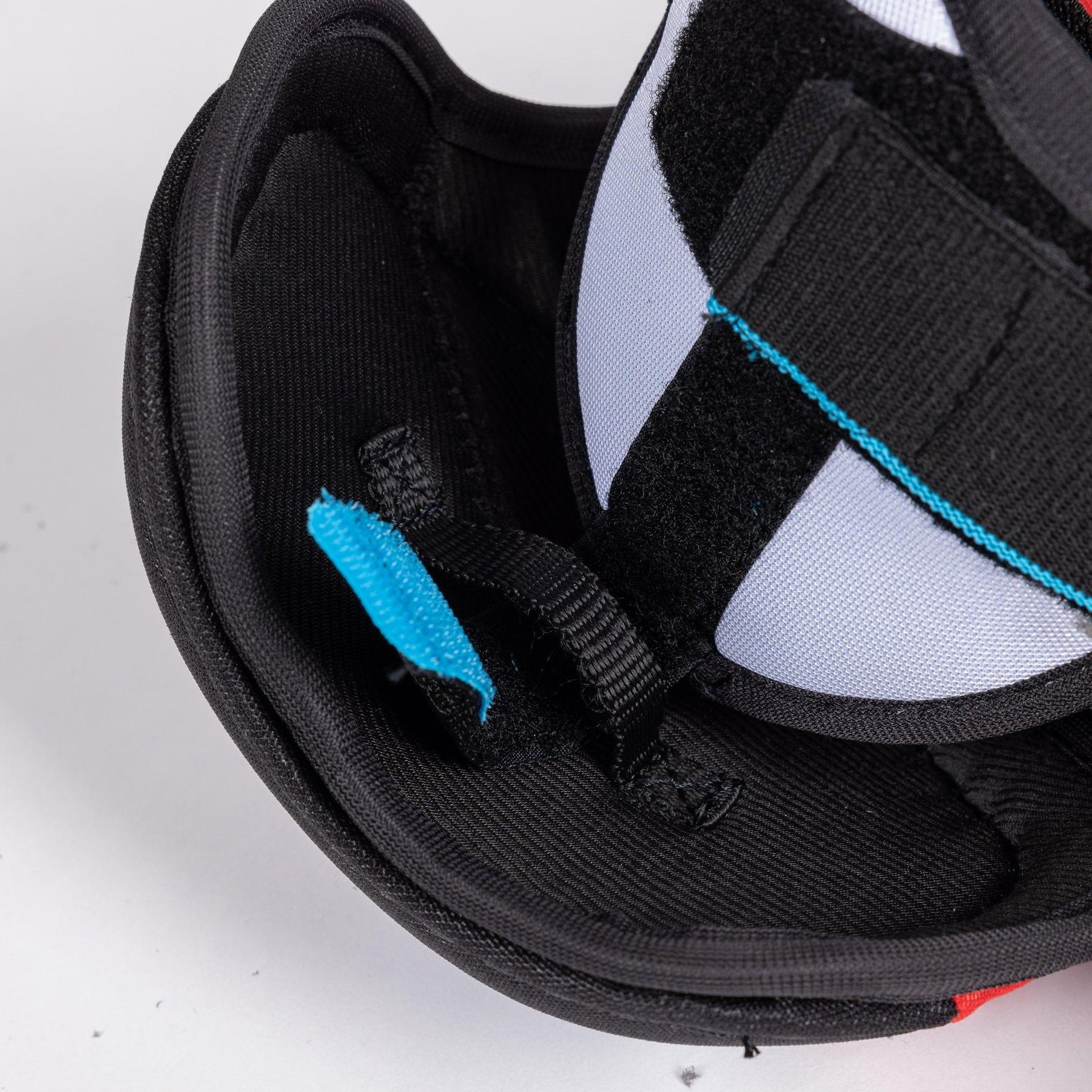 - Adjust the bicep guards using the Velcro straps located underneath the shoulder caps (if applicable). At the highest point, the bicep guards should not be more than halfway down the upper arm. This is important because they can interfere with your elbow pads, throwing off the fit.