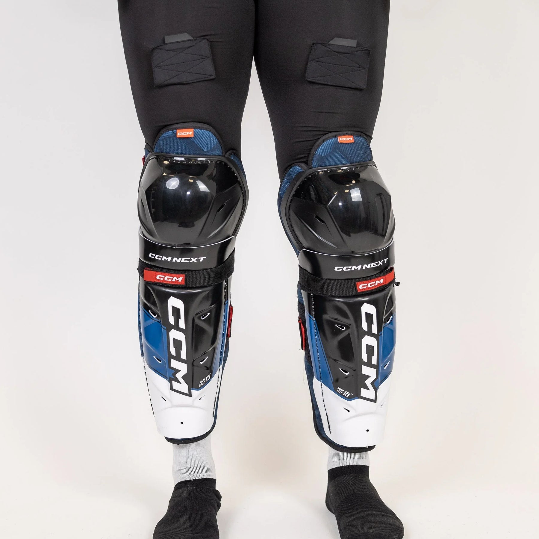 The CCM Next Senior Hockey Shin Guards are available in 14", 15", 16", and 17".