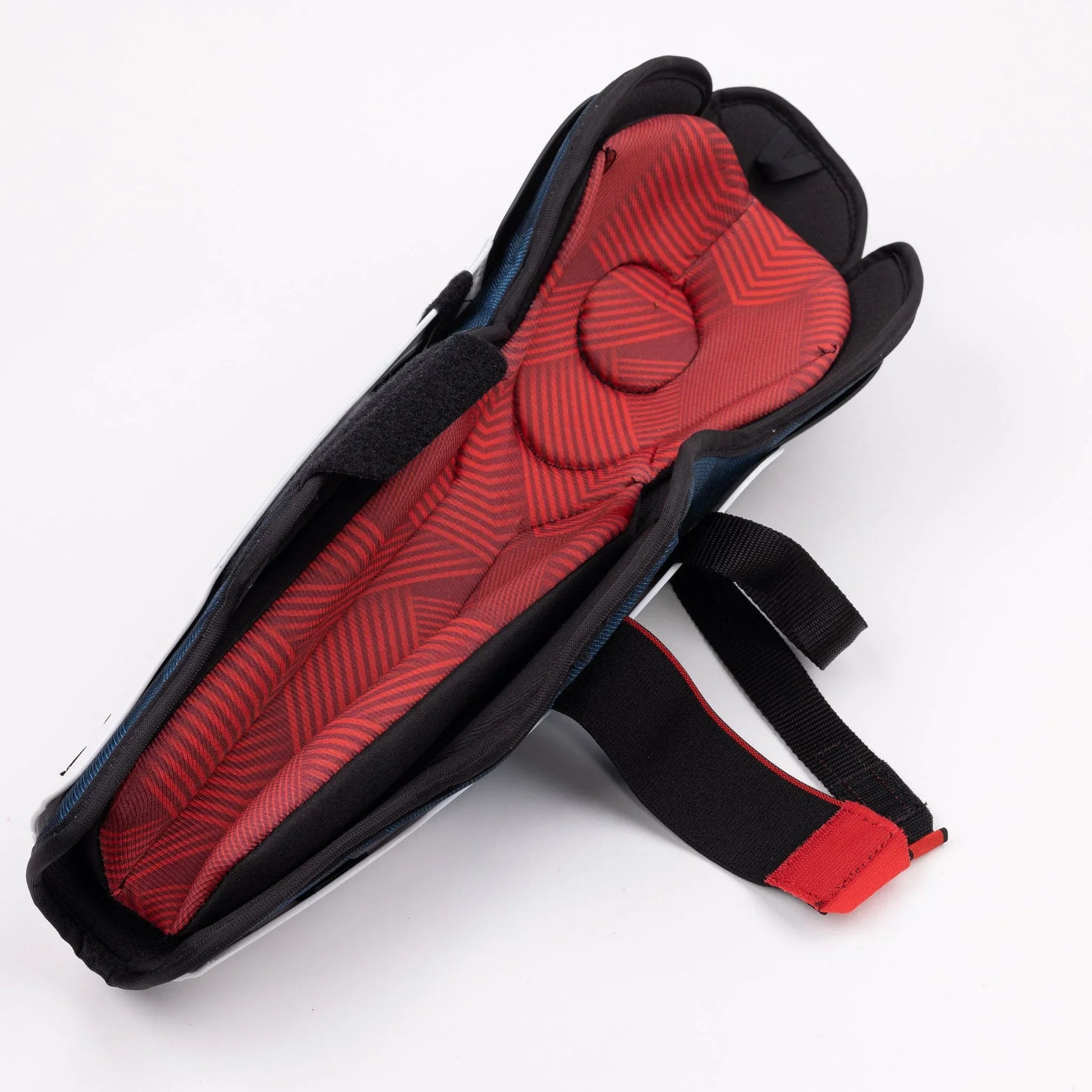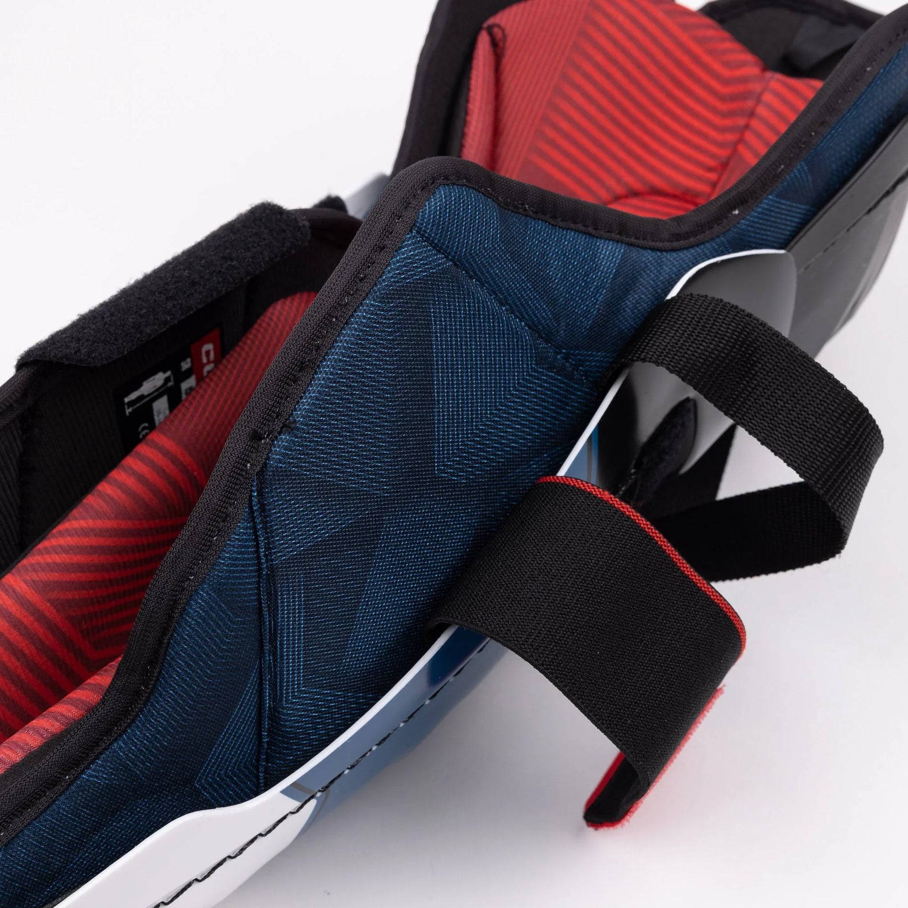 The CCM Next shin guards use a nylon upper lock strap to secure the upper portion of the shin. When adjusted correctly, the pad shouldn't move much down the leg, keeping the shin protected. To connect the lower part of shin and the calf, these guards use a wide elastic calf strap. This strap is designed to wrap around the leg and provide protection from impacts. Both straps are easily adjustable and provide players with an additional level of comfort.