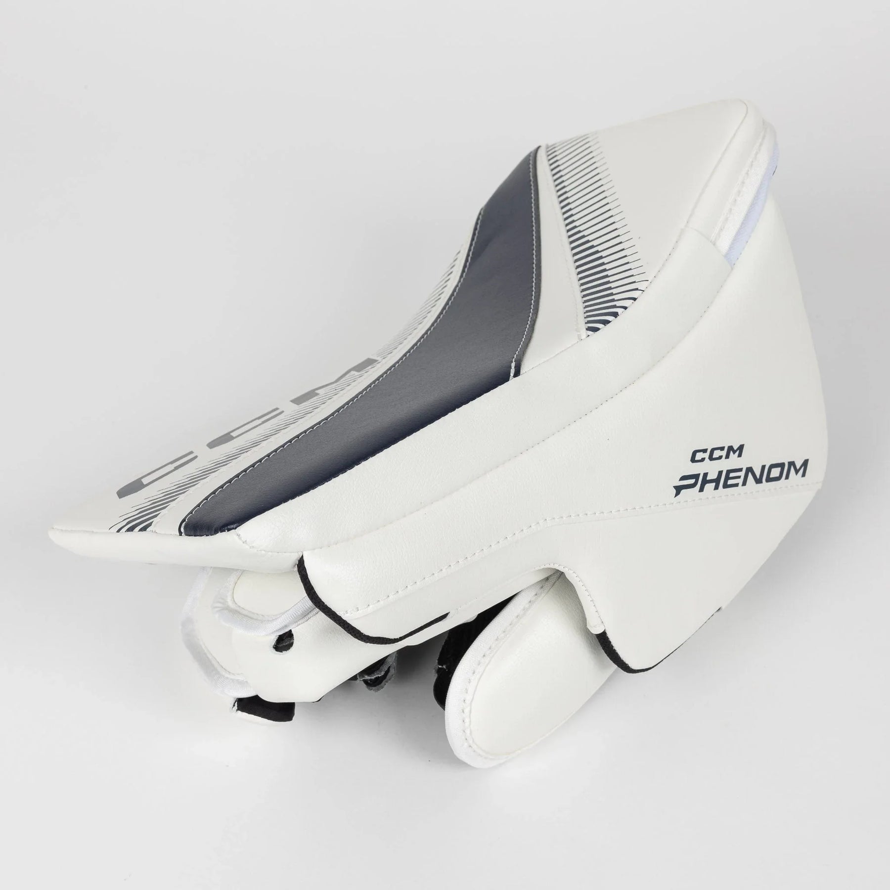"Inspired by the challenges young goalies face when first stepping into the crease, CCM developed the Phenom line as a true junior-specific gear setup—not just a scaled-down version of pro models. From the flexible pad core and tailored strapping to the lightweight materials and game-ready glove closure, every element of Phenom was designed with learning and development in mind."