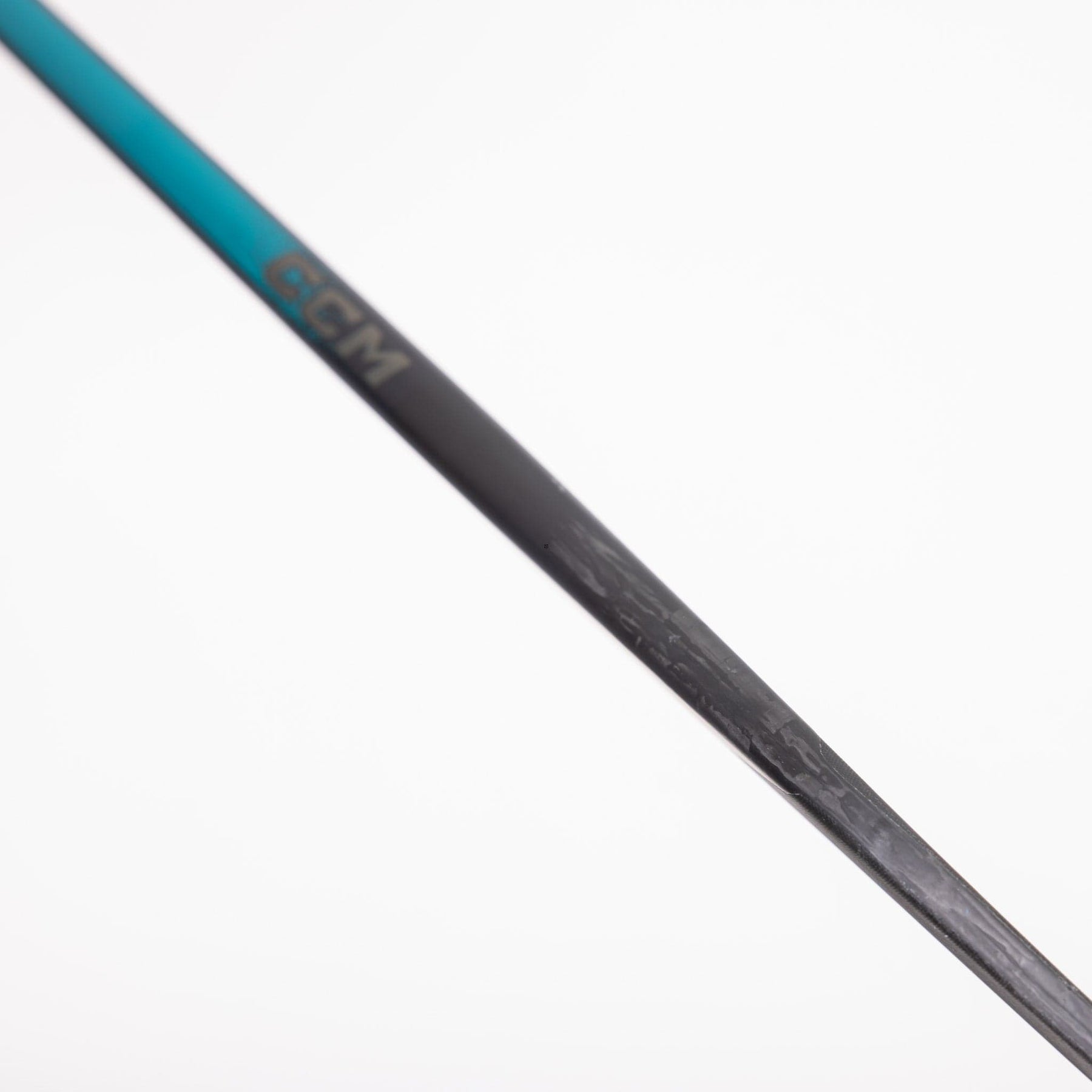 The Trigger 10 Pro teal stick features a redesigned to shaft, identical as seen on the CCM Vision Hockey Stick. It is designed to enhance hand and forearm strength with an asymmetric design and boosts comfort and minimizes wrist strain. CCM also included an ergo shaft shape, which is a rounded C-shaped middle section that is designed to improve comfort when lowering your bottom hand, while the E-shaped bottom section ensures an even faster release.