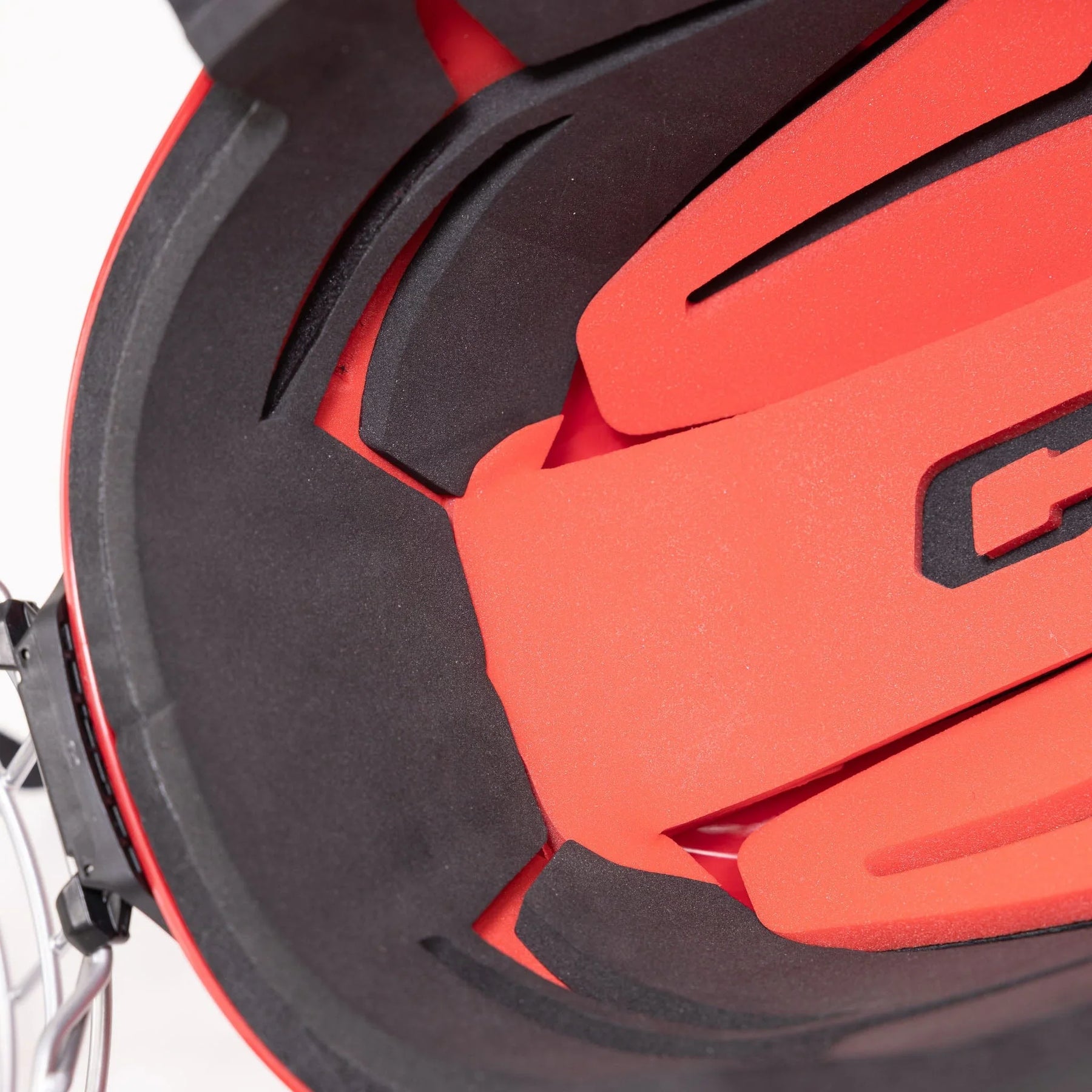 To ensure a good fit after you have received your proper sized helmet, flip open and unlock the helmet clip(s) and slide the helmet to its last and largest setting. Position it on the head so the rim is one finger width above the eyebrow. Gradually begin to downsize the helmet, pressing on the front and back until a comfortable, snug fit is achieved. Lock the helmet into this size by pressing down and closing the locking adjustment(s). Look in a mirror while wearing the helmet to make sure the ear guards are covering at least half of your ear and to make sure the helmet does not appear to be shifting back and forth on your head.