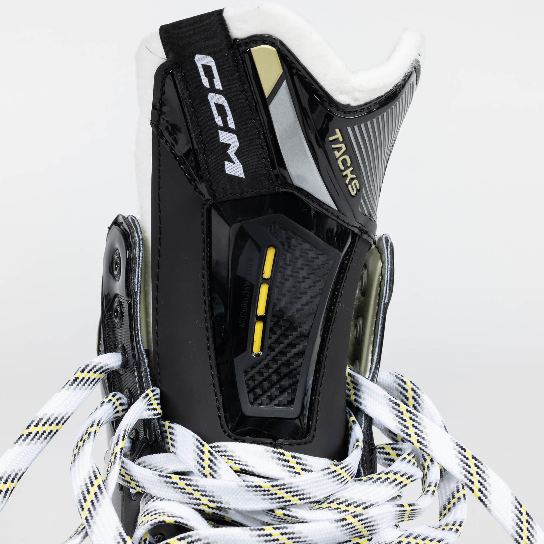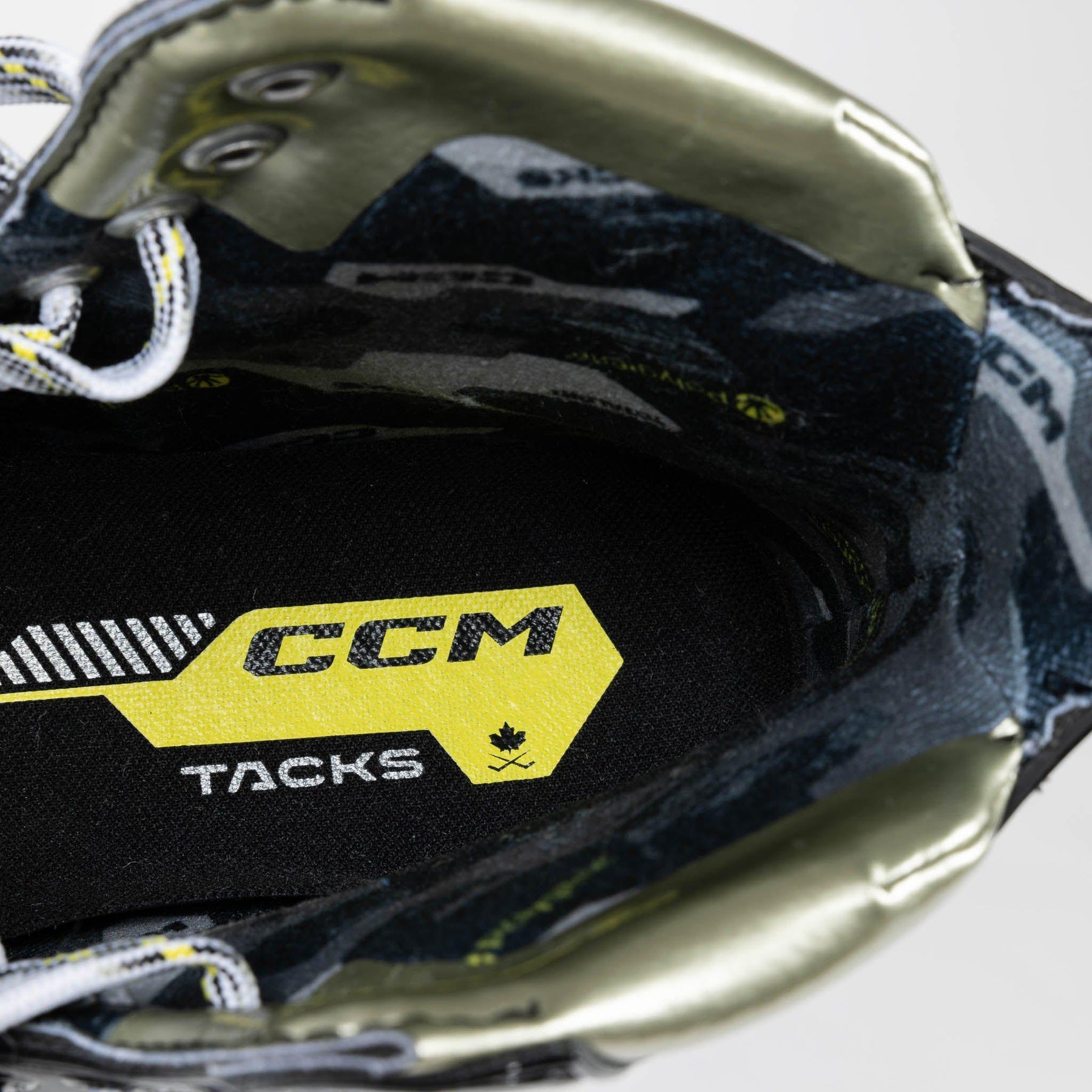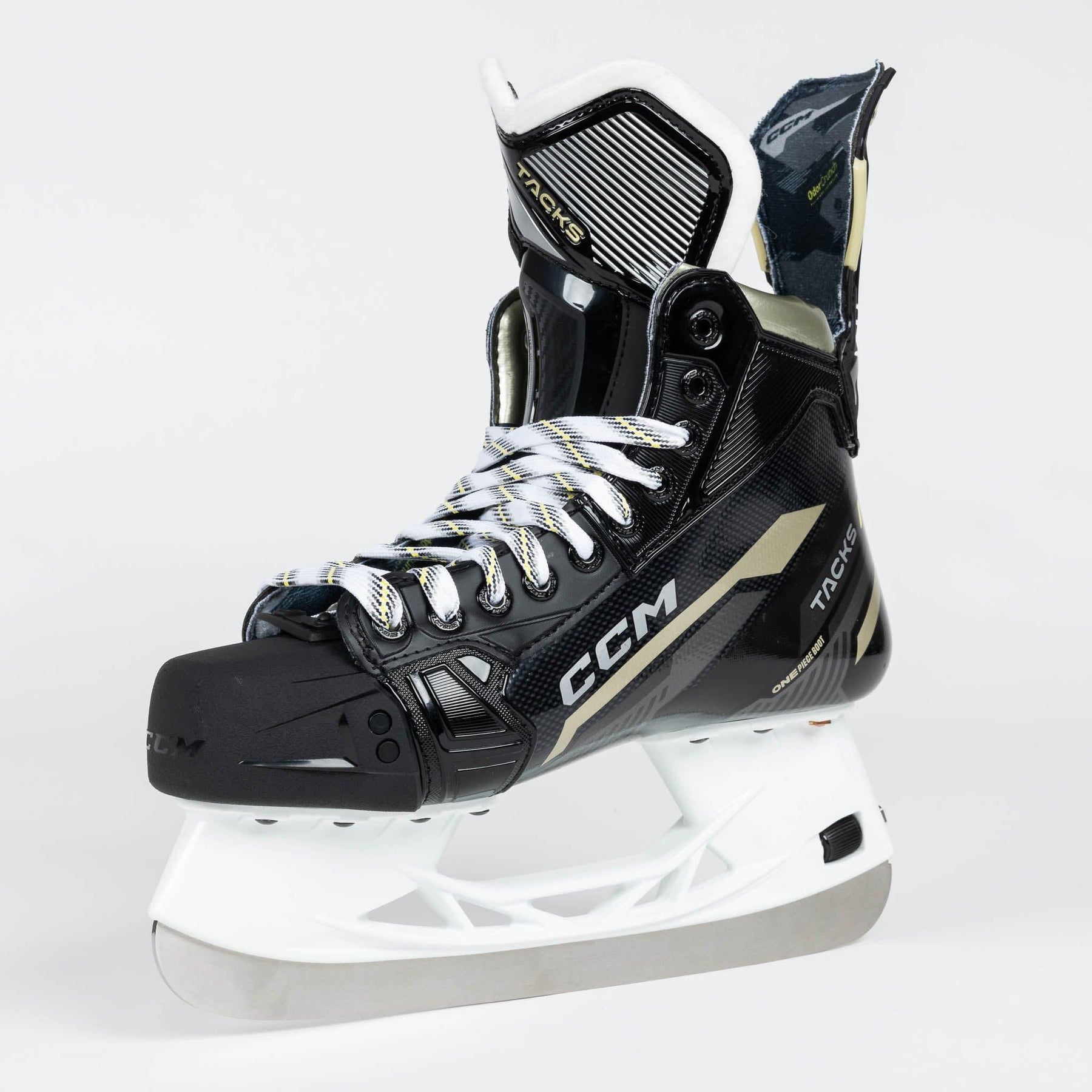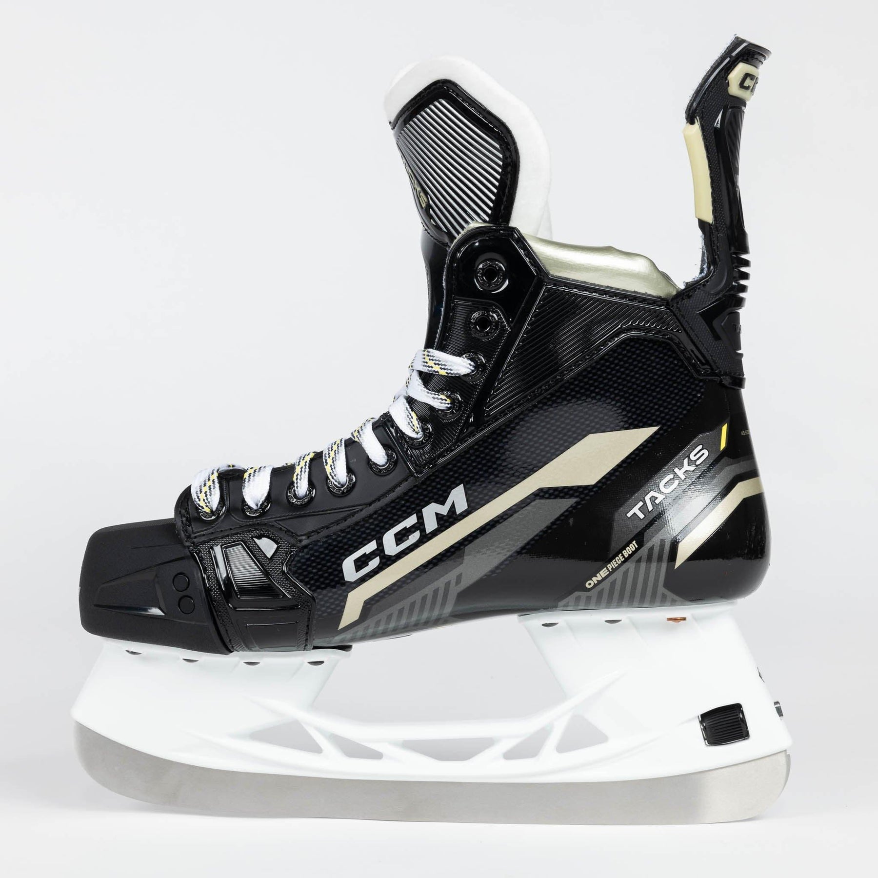 One of the most noticeable updates made to the Tacks series was the amended outer design and graphics. CCM rolls out new colours and text logos to represent a fresh start to the line in 2022. In addition to the modern, techy styles on the side of the boot, you’ll also notice the new gold graphics to replace the old yellow, as well as the clean “Tacks” and “AS-590” redesigned logos all throughout.
