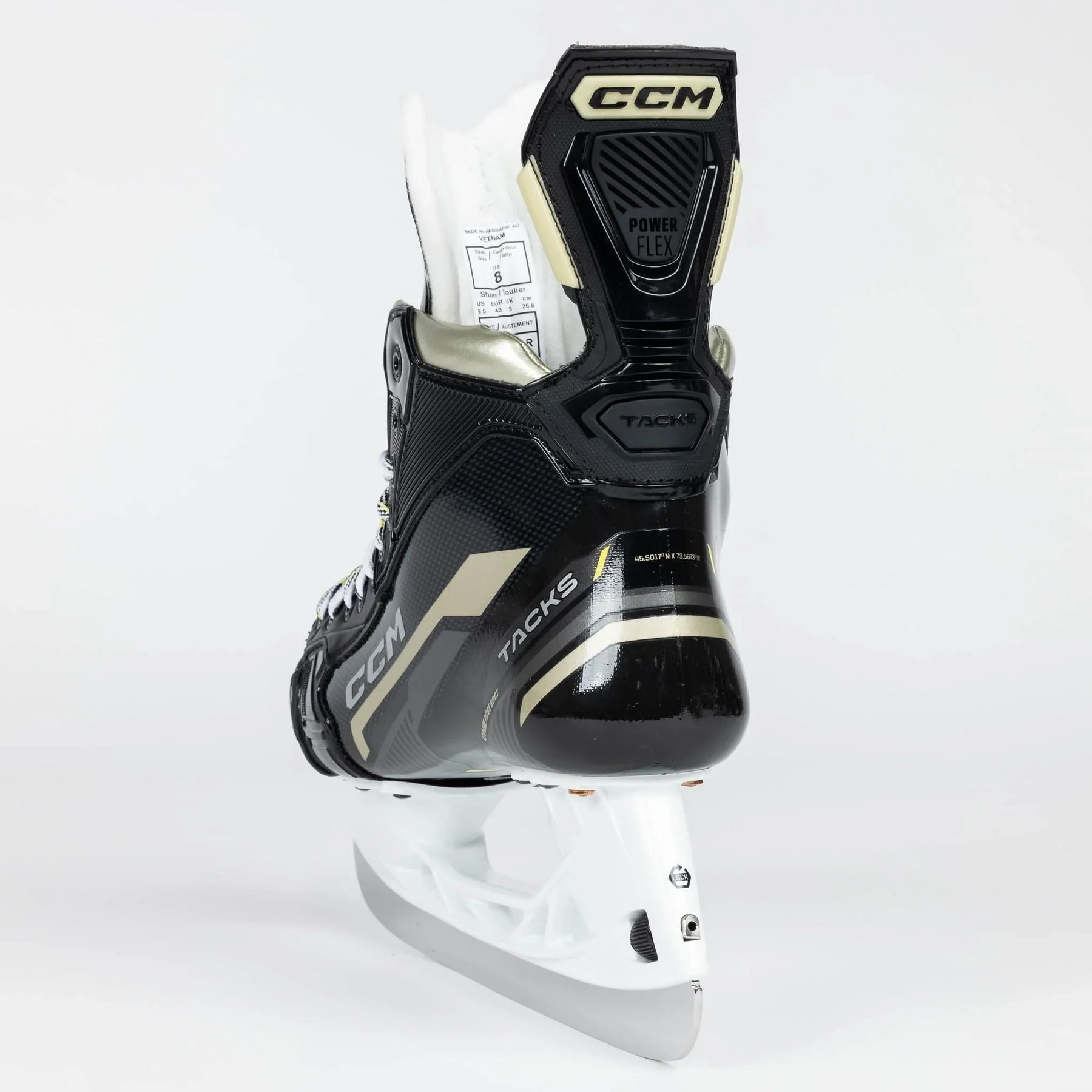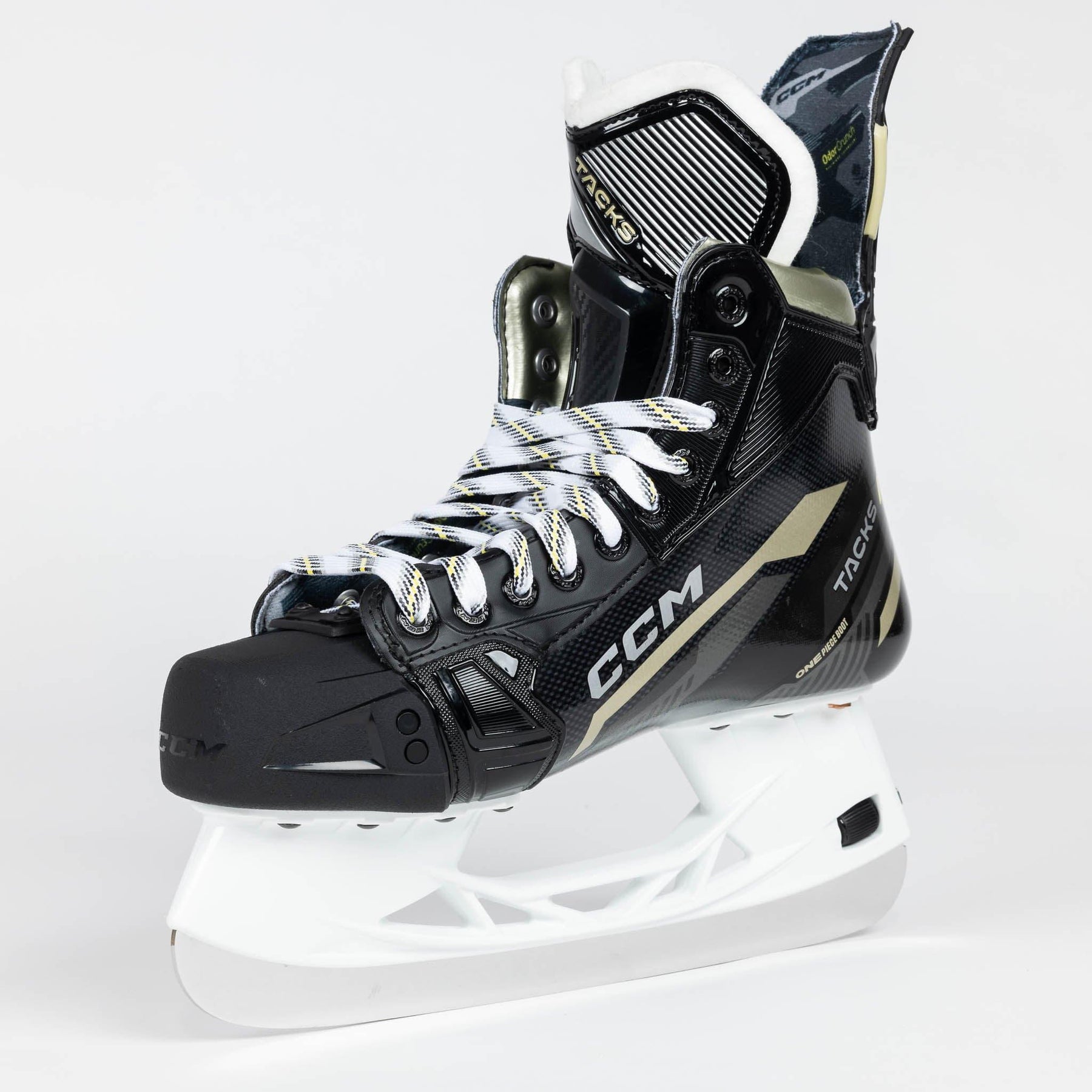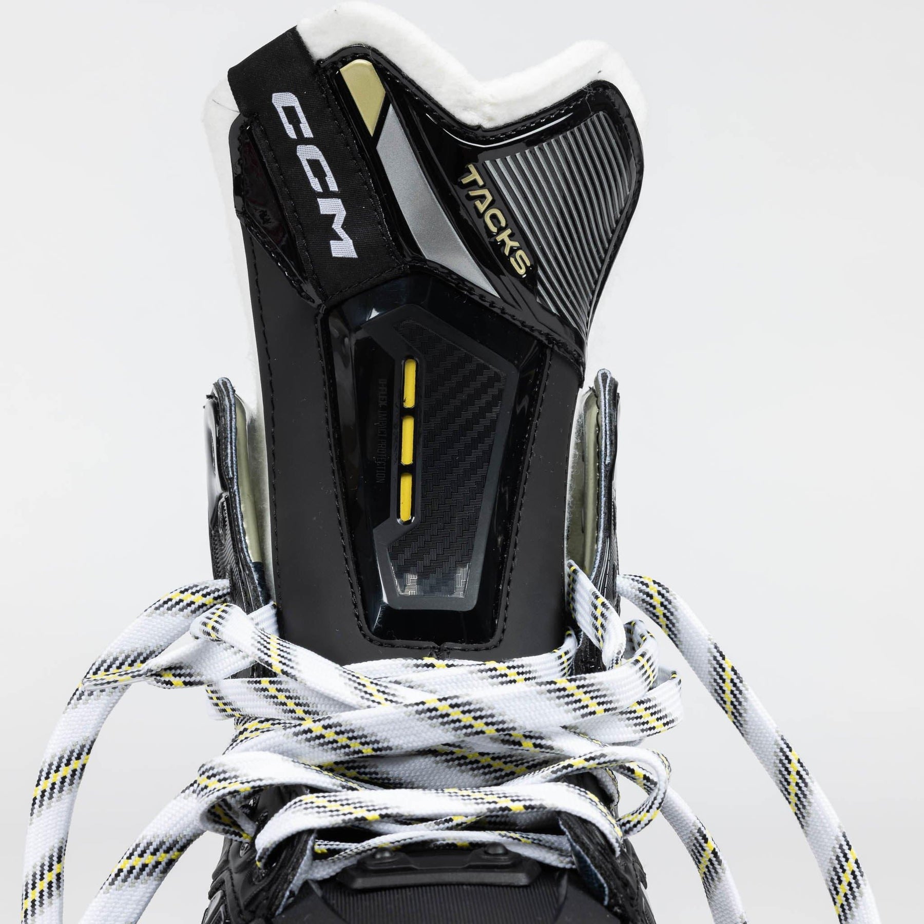 One of the most noticeable updates made to the Tacks series was the amended outer design and graphics. CCM rolls out new colours and text logos to represent a fresh start to the line in 2022. In addition to the modern, techy styles on the side of the boot, you’ll also notice the new gold graphics to replace the old yellow, as well as the clean “Tacks” and “AS-590” redesigned logos all throughout.