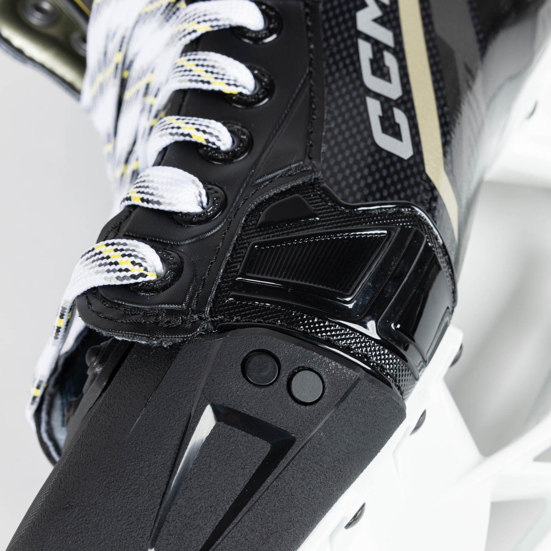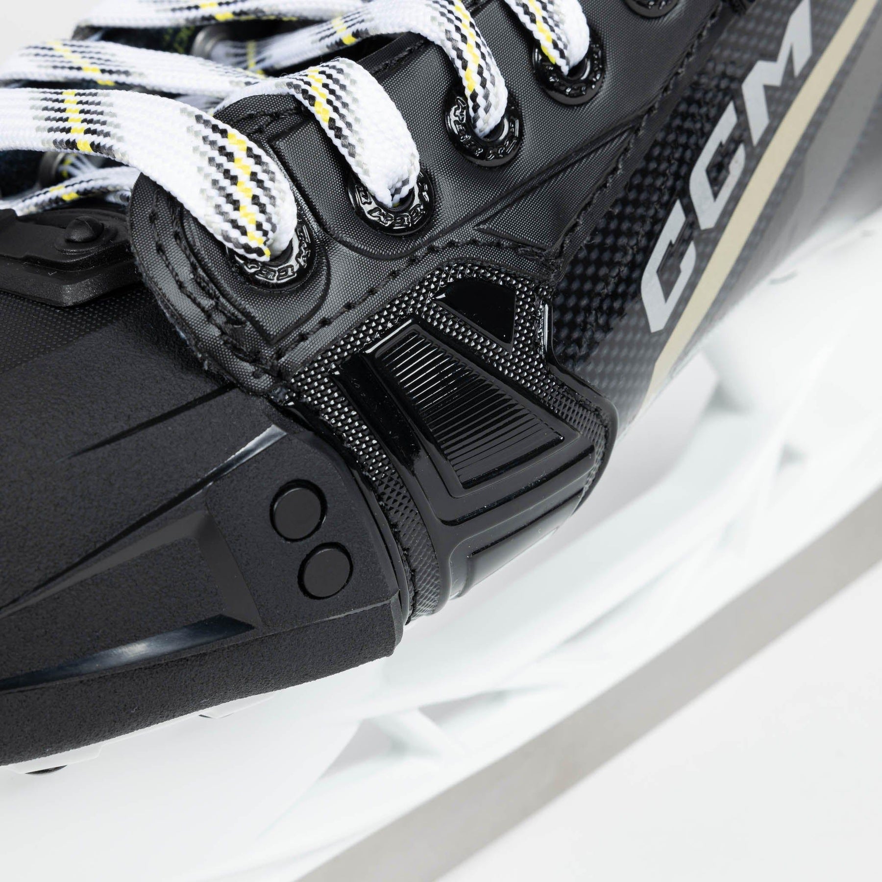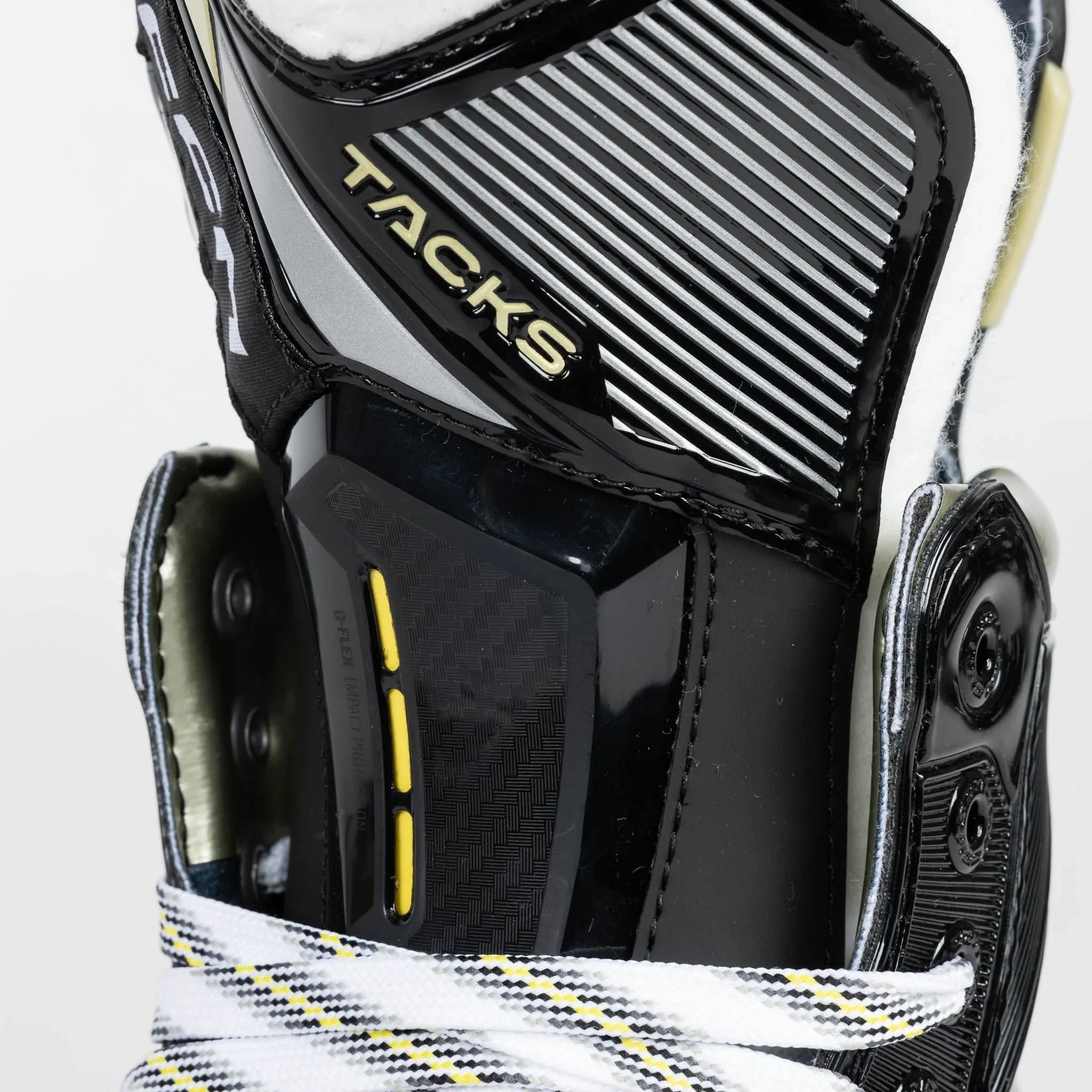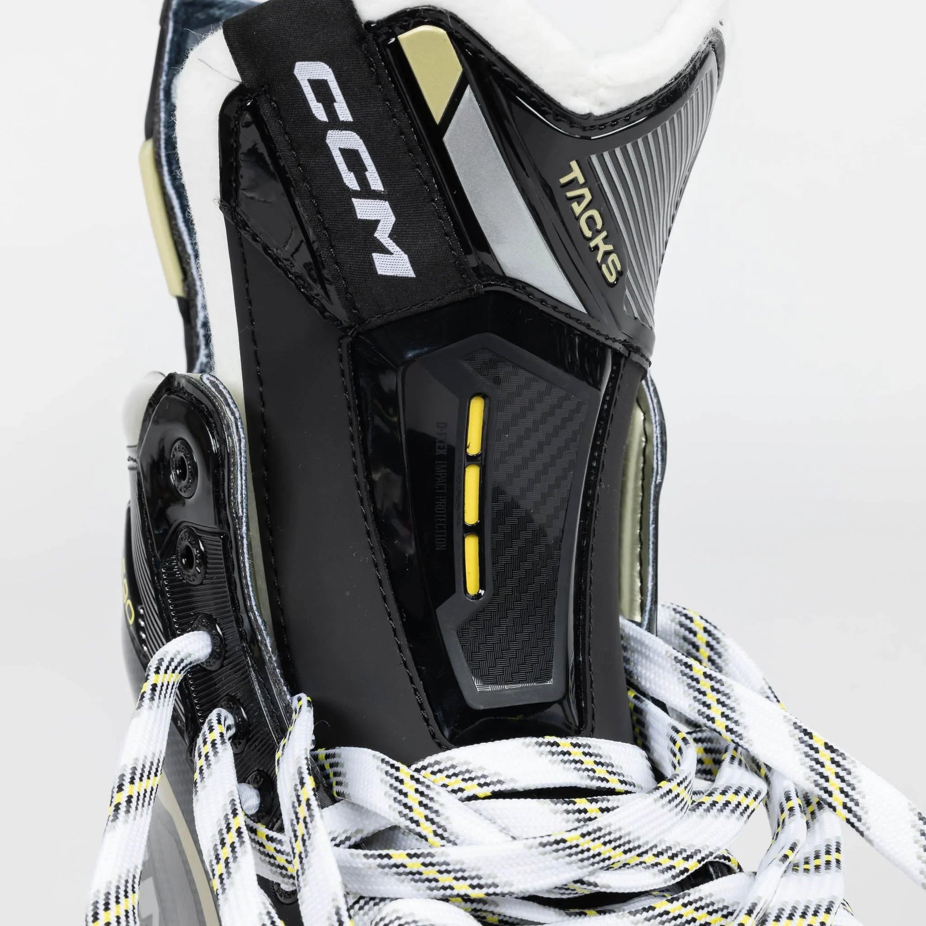 One of the most noticeable updates made to the Tacks series was the amended outer design and graphics. CCM rolls out new colours and text logos to represent a fresh start to the line in 2022. In addition to the modern, techy styles on the side of the boot, you’ll also notice the new gold graphics to replace the old yellow, as well as the clean “Tacks” and “AS-590” redesigned logos all throughout.