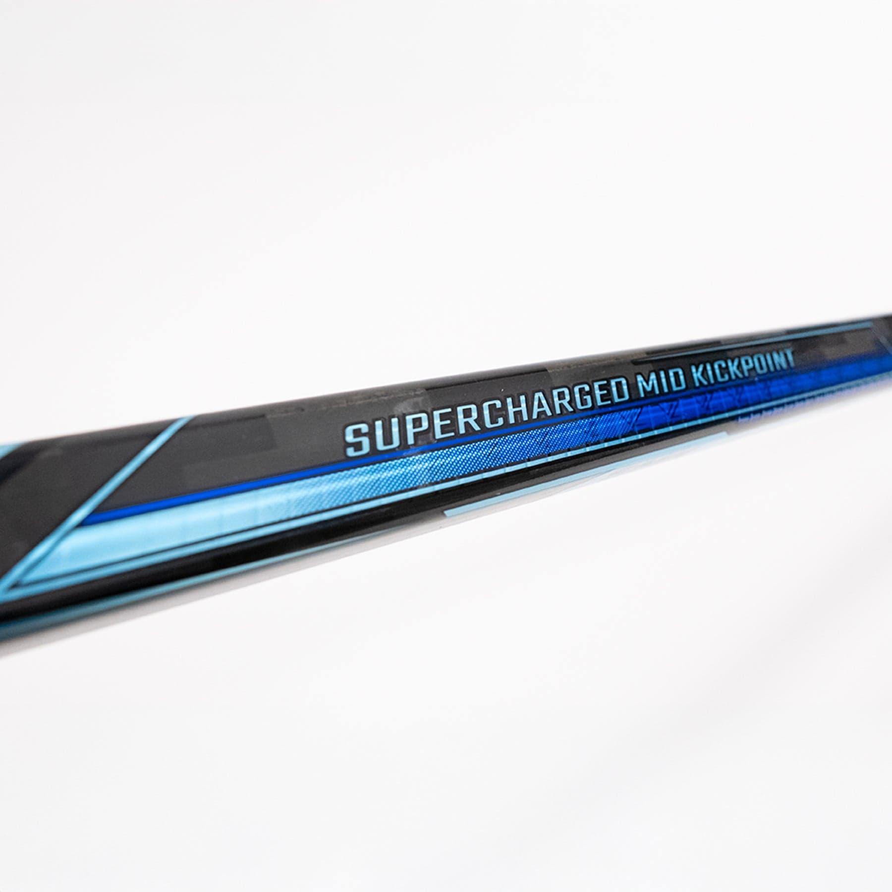 The new Vizion stick features a supercharged mid-kickpoint. Mid kick is a solid stick option for players who often find themselves doing just a bit of everything during the game. It is positioned in the center of the shaft to optimize energy transfer, which allows players to generate power from both the lower and upper sections of the stick, making it ideal for all shooting styles. The supercharged kickpoint is designed to add more power and control on the release of the shot.