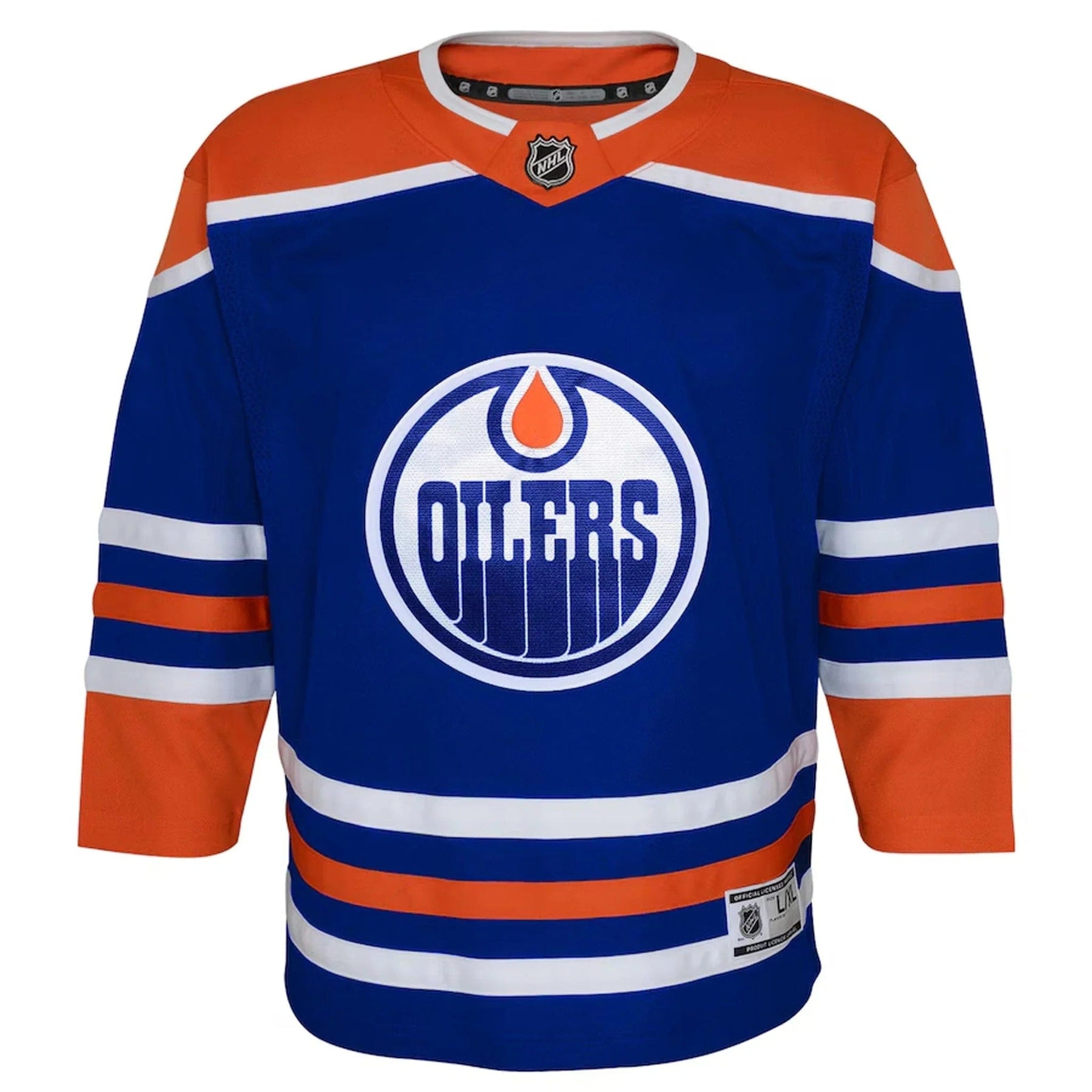 The Edmonton Oilers Home Outer Stuff Replica Youth Jersey is officially licensed with the NHL. Featuring authentic feeling material, and crisp team logos, the Outerstuff Replica Breakaway Hockey Jersey is the perfect way to show off your team spirit!