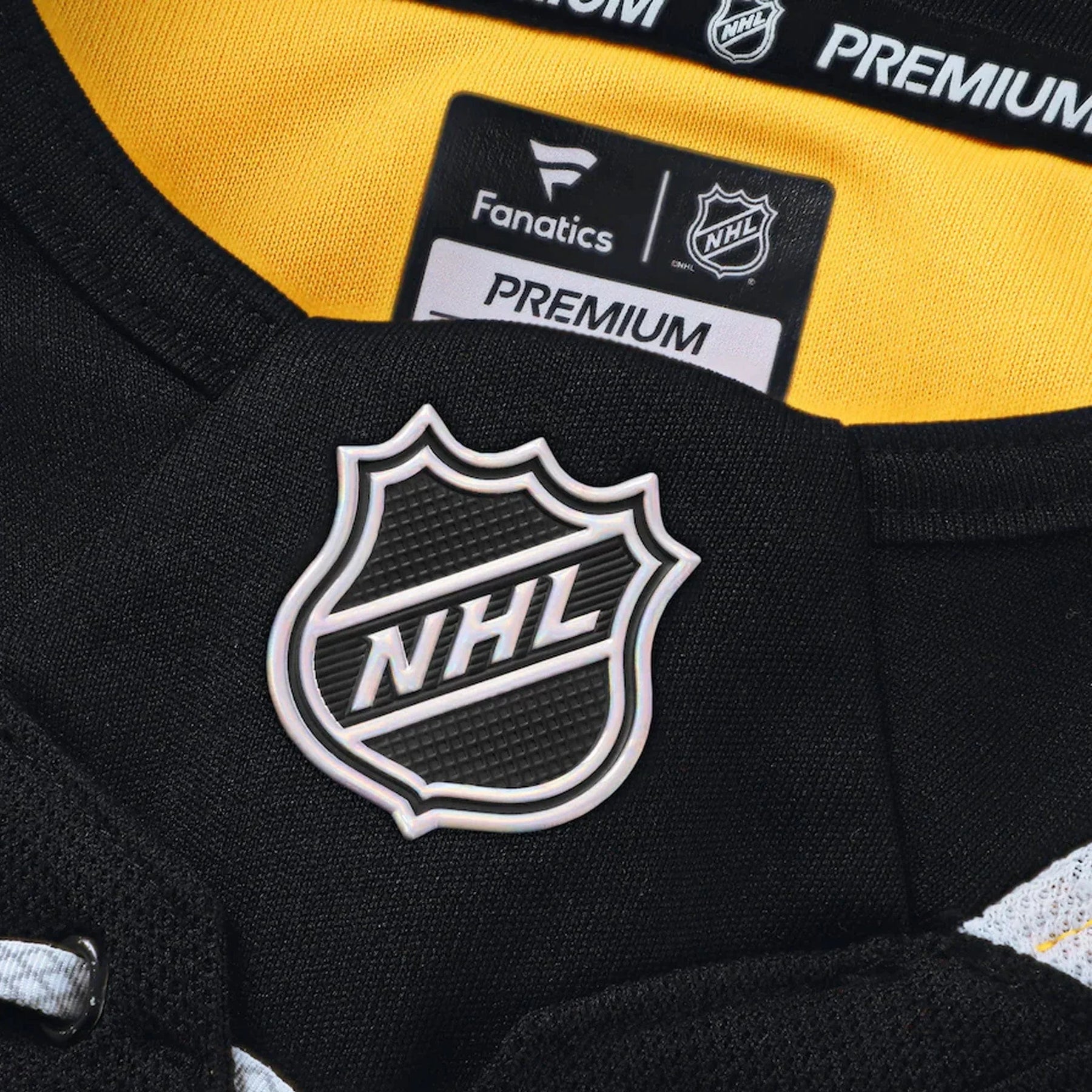 - Holographic NHL Shield and embroidered Fanatics flag patch