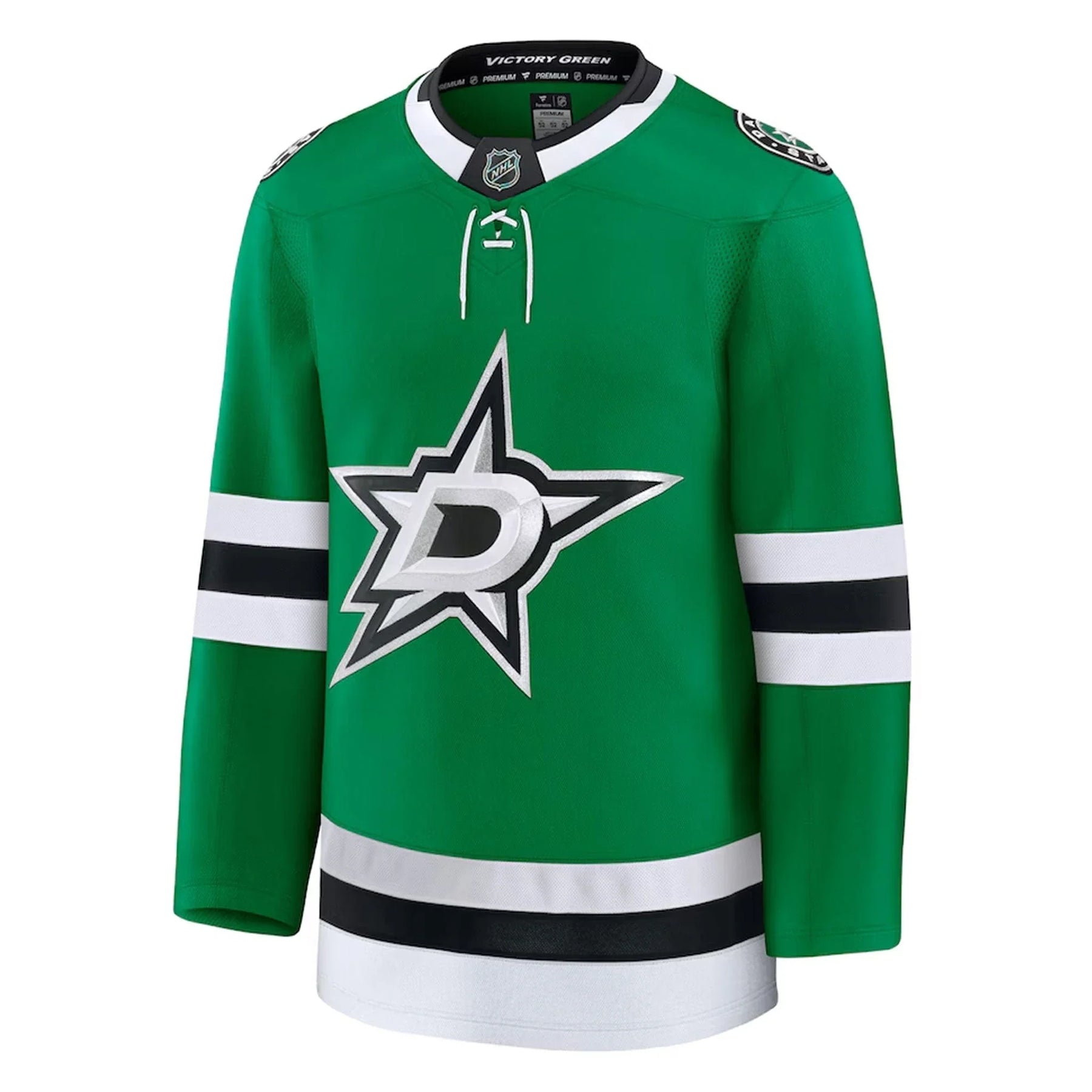 When you're watching the on-ice action, you need a jersey to match. With this Dallas Stars Fanatics Home Premium Jersey you get just that! This premium jersey is made for the loyal Dallas Stars fan like you and takes inspiration from what your team wears on gameday. Available in traditional colors, this jersey possesses a more adjusted fit and mesh panels to enhance your comfort no matter where you enjoy the game!