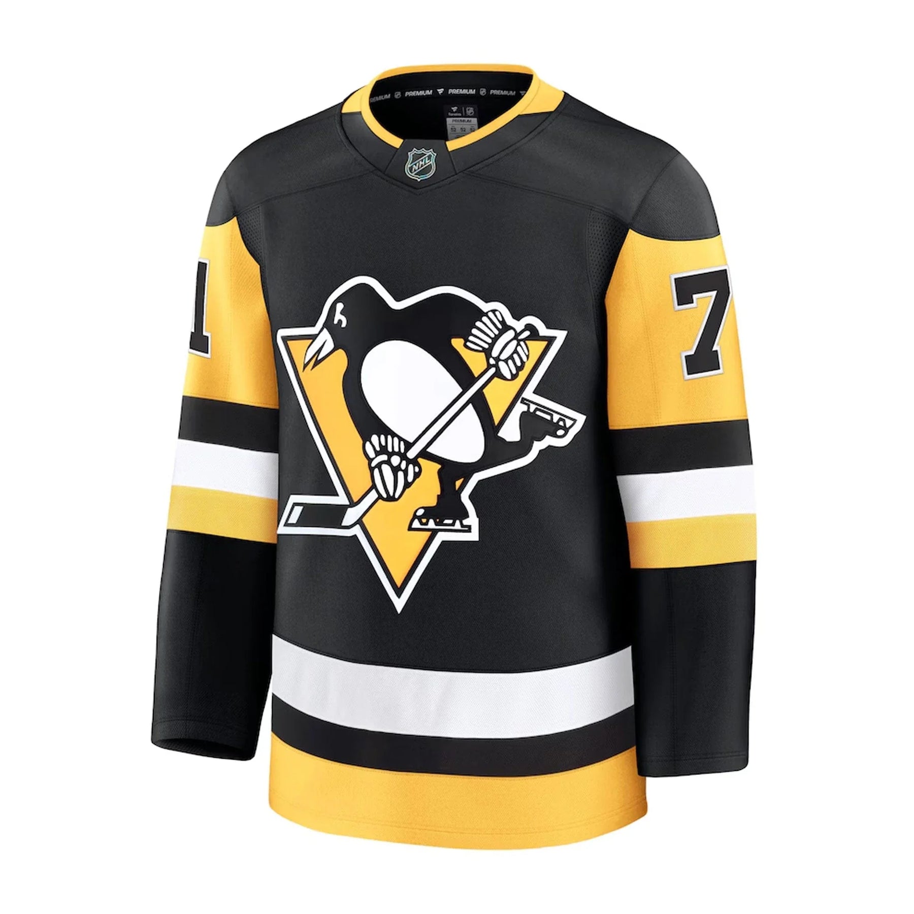 When you're watching the on-ice action, you need a jersey to match. With this Pittsburgh Penguins Fanatics Home Premium Jersey you get just that! This premium jersey is made for the loyal Pittsburgh Penguins fan like you and takes inspiration from what your team wears on gameday. Available in traditional colors, this Evgeni Malkin jersey possesses a more adjusted fit and mesh panels to enhance your comfort no matter where you enjoy the game!