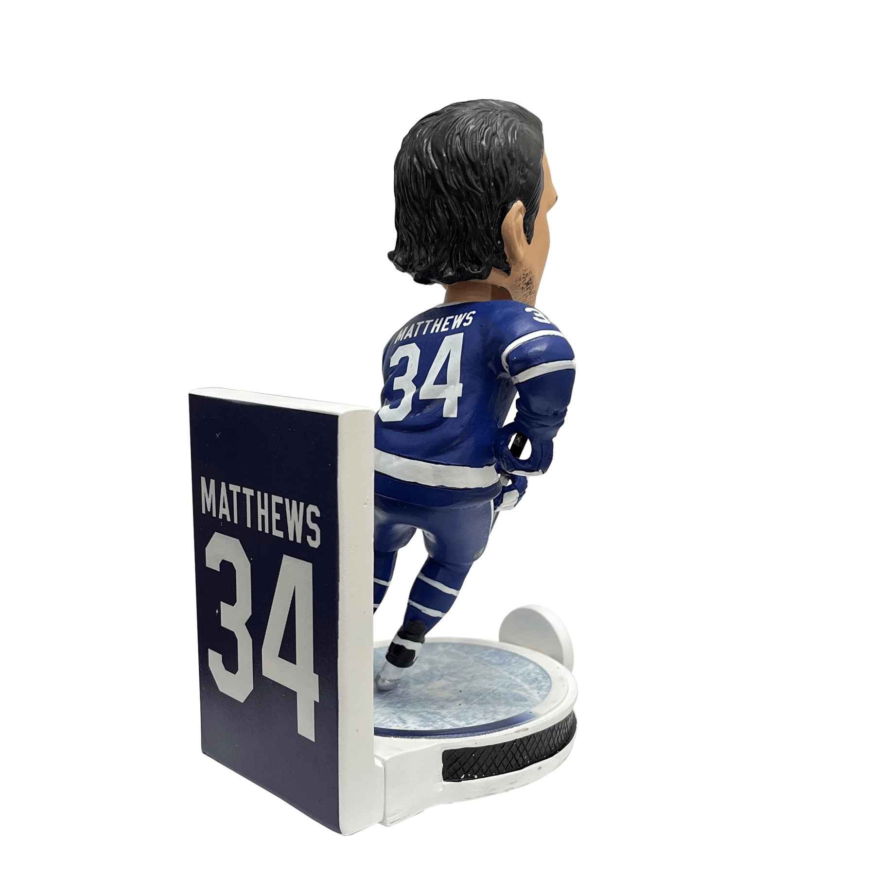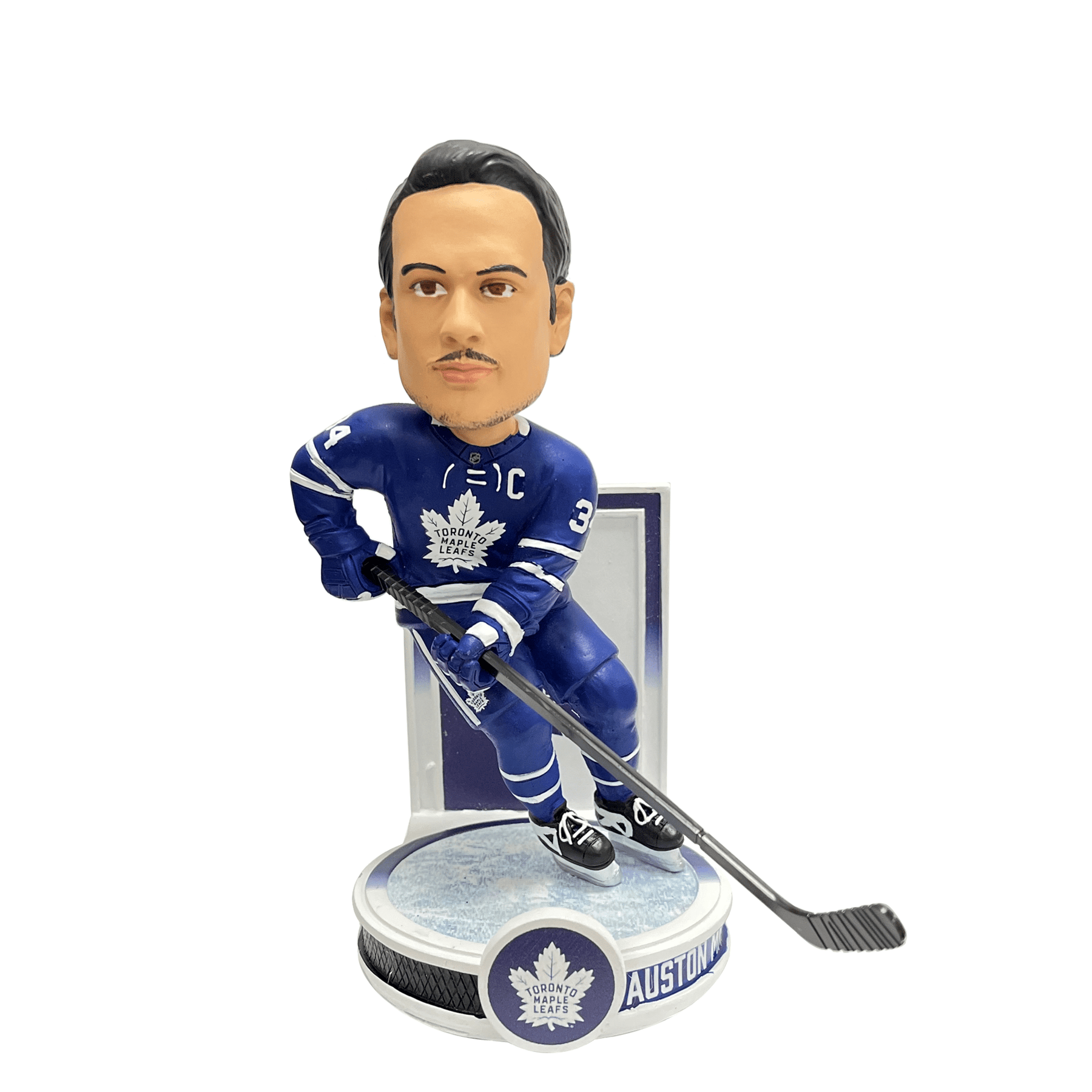 Showcase your appreciation for elite goal-scoring prowess with this Forever Collectibles NHL Banner Series bobblehead featuring Auston Matthews. Expertly rendered with exceptional detail, this collectible captures the Toronto Maple Leafs phenom in striking form. The custom banner base displays authentic team colors and graphics, creating an impressive focal point for any hockey memorabilia collection. Officially licensed and built to collector standards, this bobblehead is an outstanding way to honor one of the NHL's most dynamic young talents.