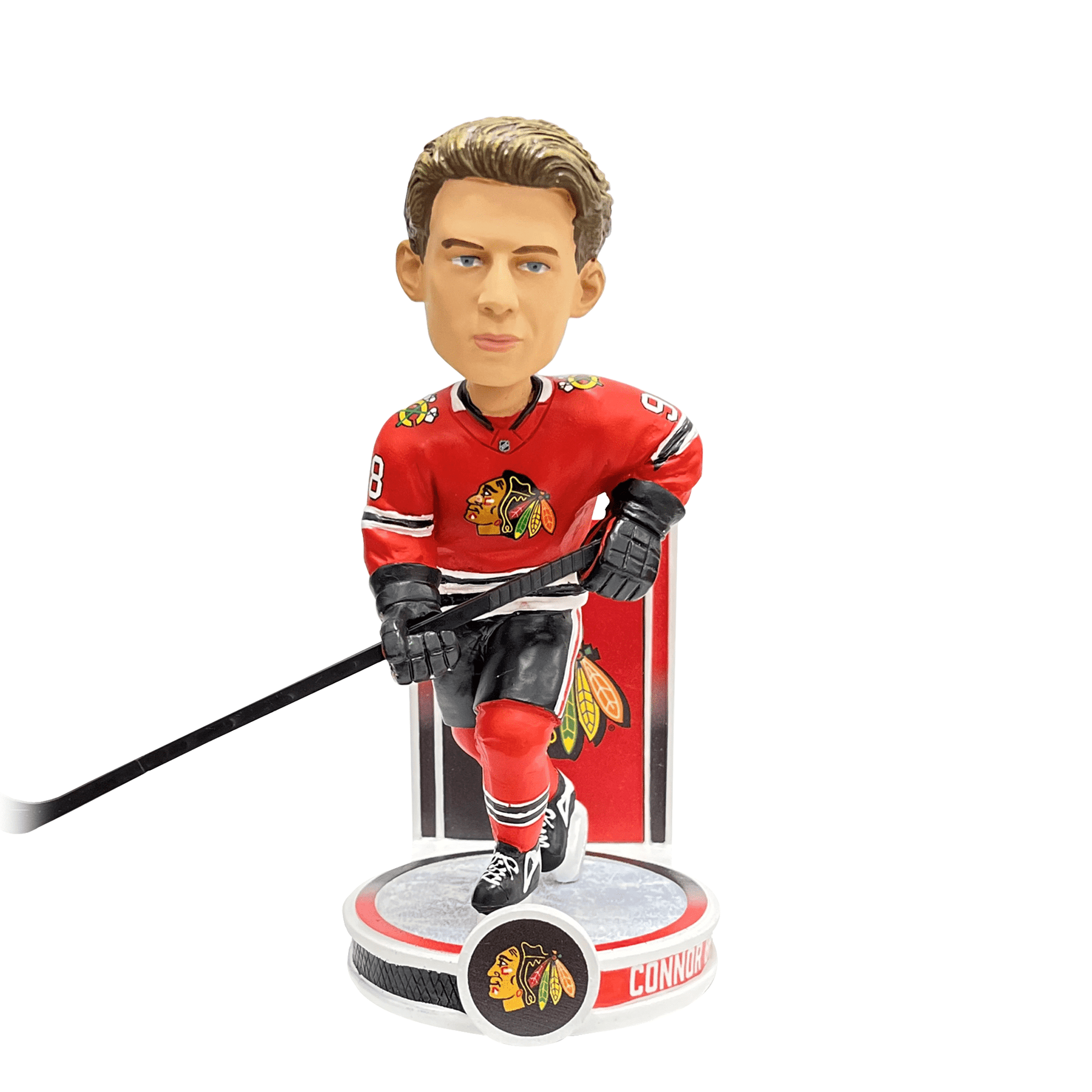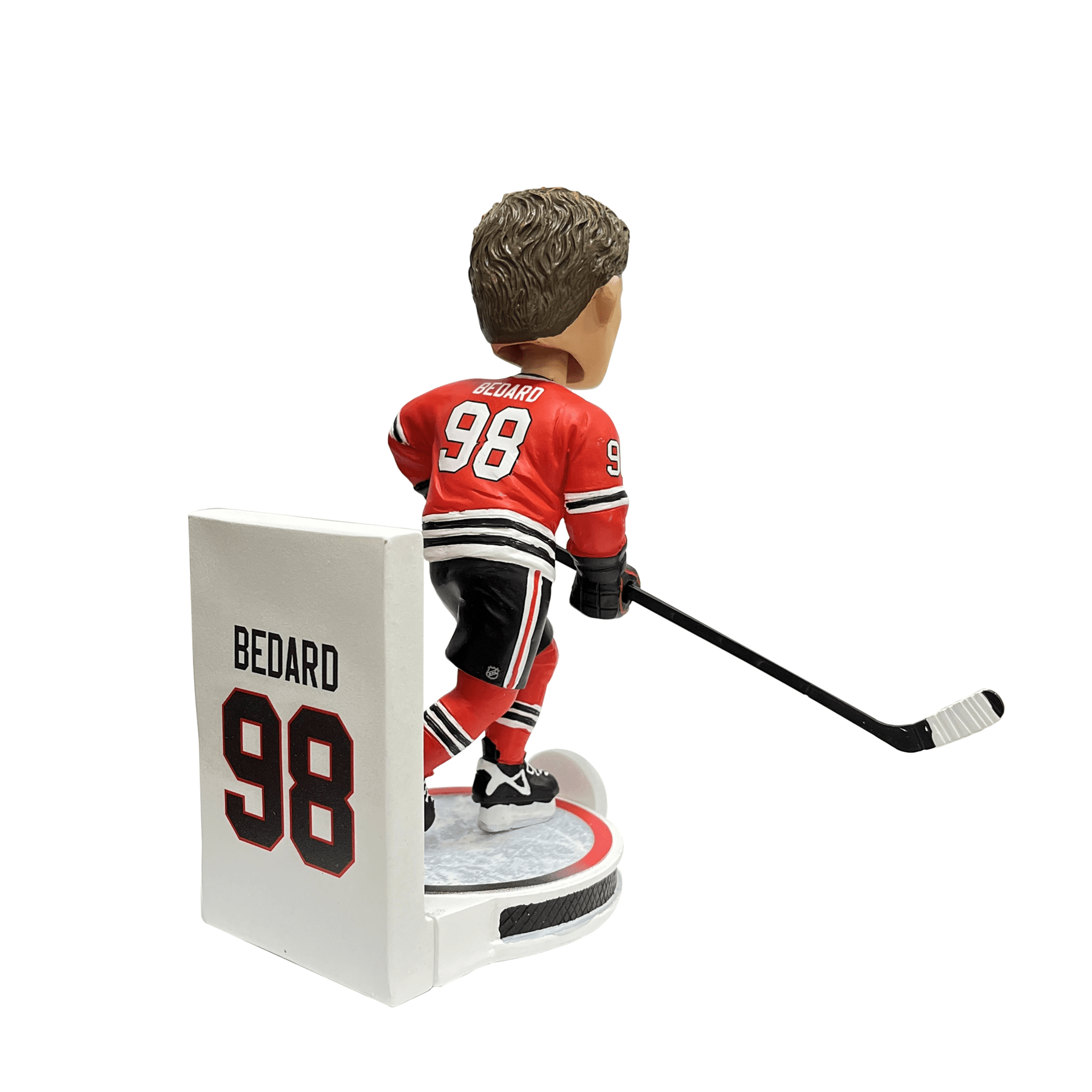 Celebrate hockey excellence with the Forever Collectibles NHL Banner Series Bobble. This collectible showcases Connor Bedard in a dynamic pose, capturing his iconic style and energy on the ice. The bobble comes with a stand, Bedard figurine, and a miniature hockey stick.