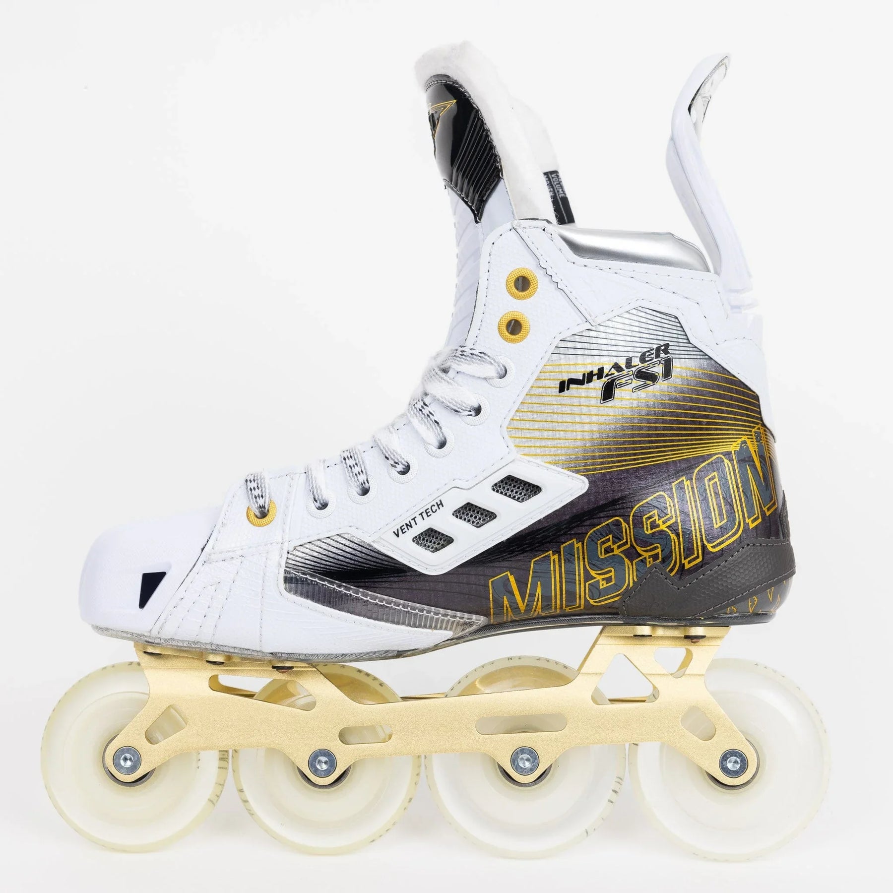 The Mission FS1 uses an injected outsole to achieve more power transfer with every stride. The outsole plays a key part in how the skate performs by connecting the boot to the chassis and ensuring that everything stays in place while minimizing energy transfer loss.