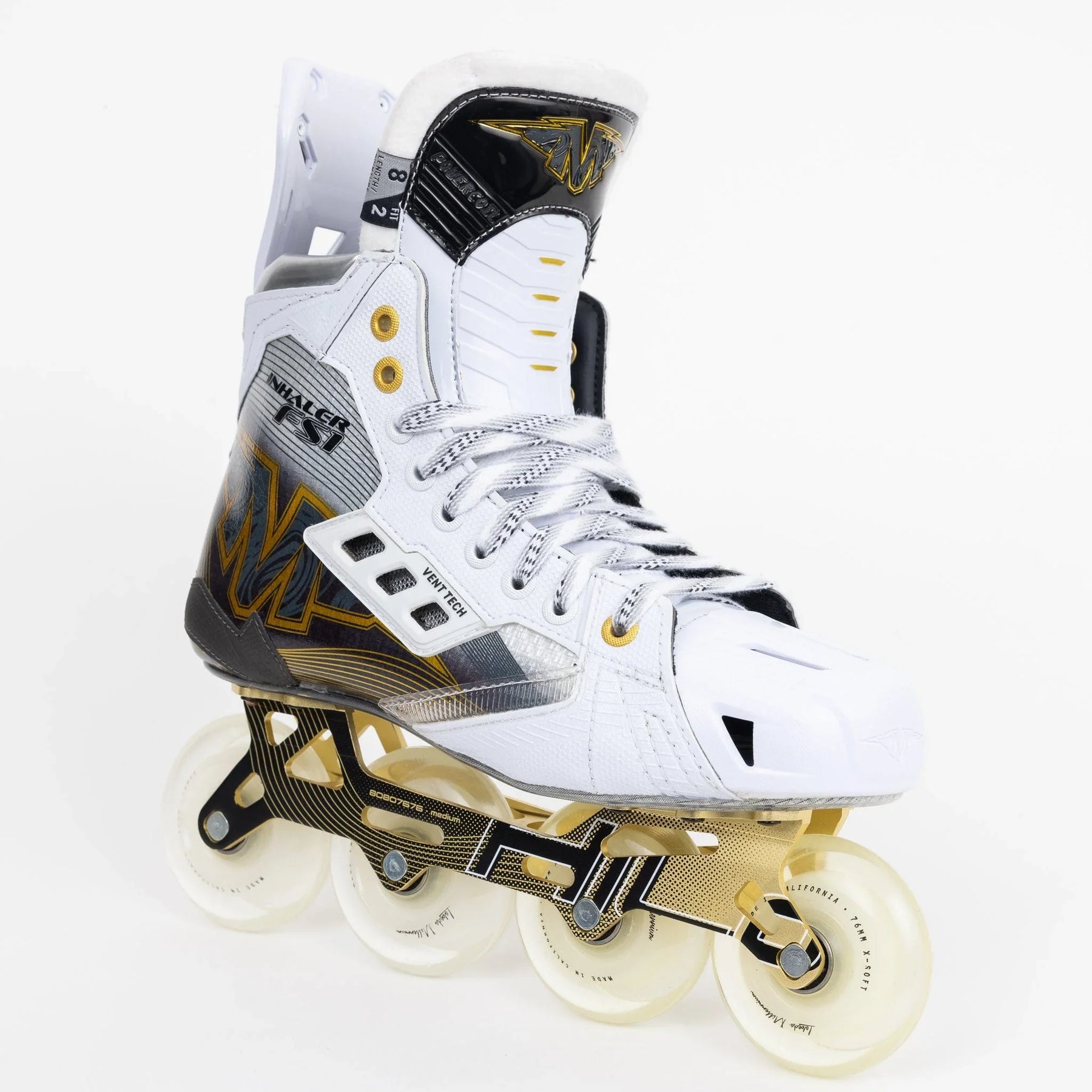 The Inhaler FS1 skates feature a machined aluminum one-piece chassis in the Ventilator. The Ventilator Chassis has been cut with extreme precision through a Computer Numerical Control system, or CNC, allowing it to be engineered without any connecting pieces, which makes the structural integrity extremely high and contributes to a more stable roller skate overall. The skate comes with the Labeda Millenium wheel and Swiss bearings, both of which have been observed in top-of-the-line skates.