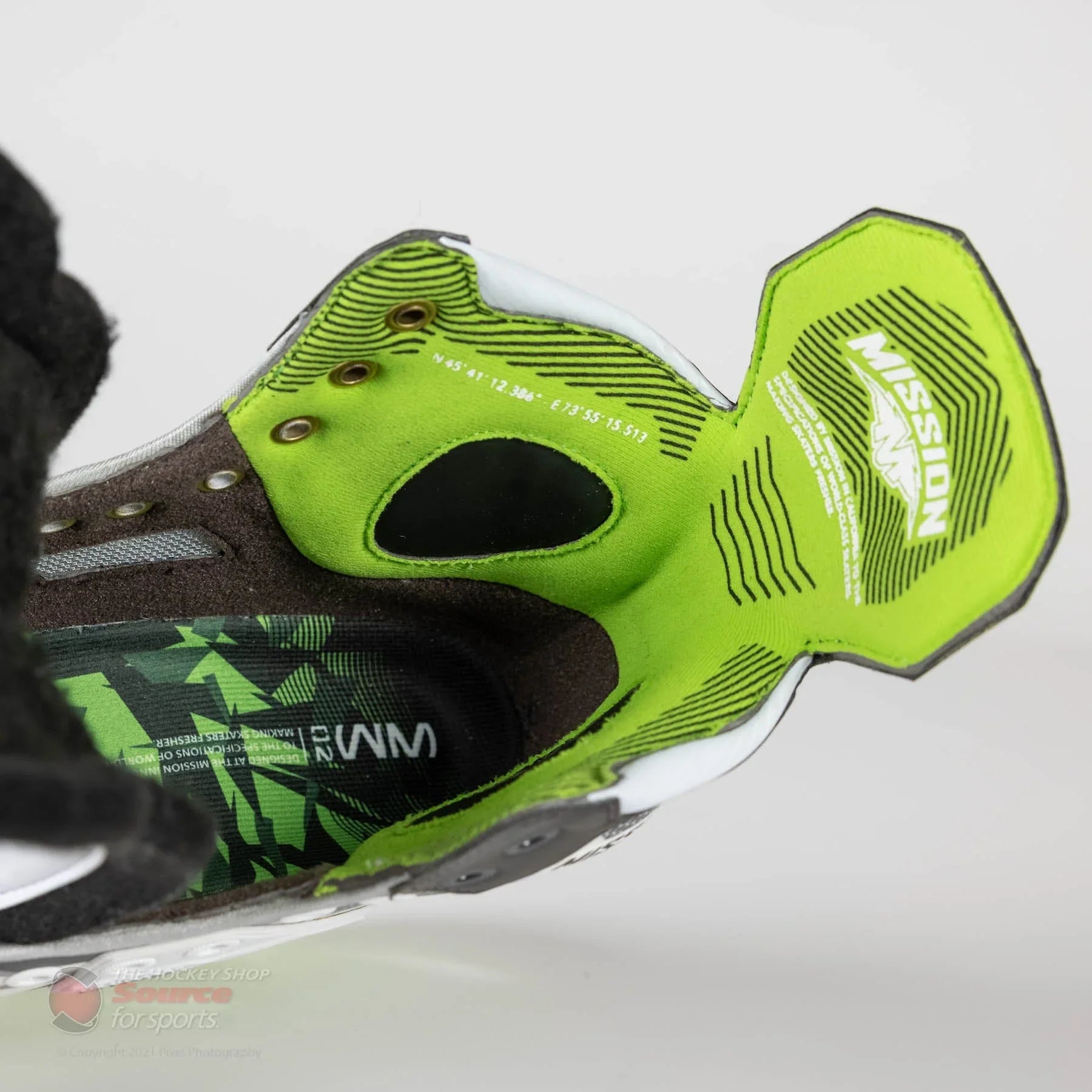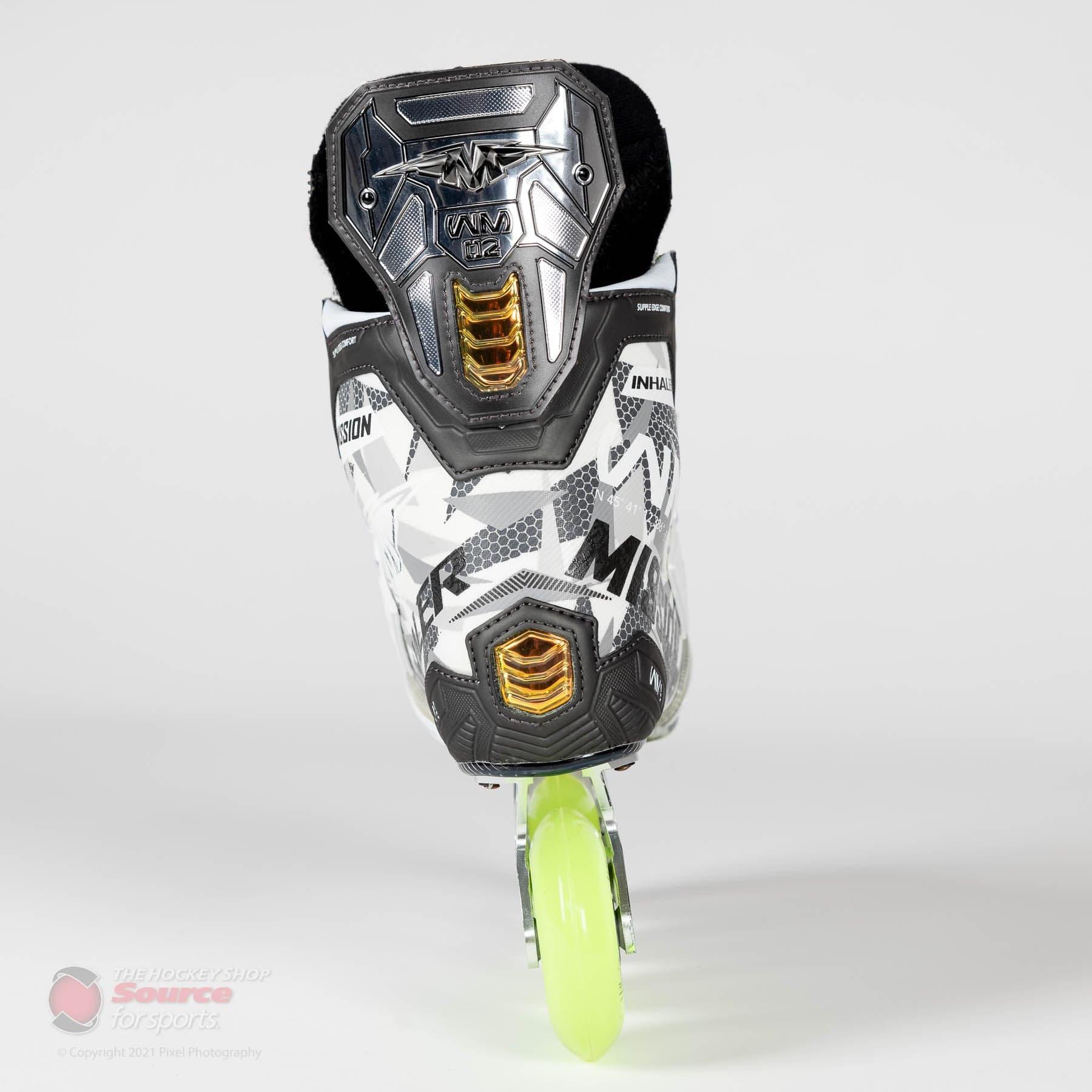Serving players since 1988.The Mission Inhaler WM02 SR Roller Hockey skates are the performance level model skate, designed for the active inline hockey player. Featuring the Asymmetrical Toe Cap found on many of Bauer’s elite level ice skates, there is reduced negative space within the skate to promote a better energy transfer when striding. The Injected Tech Mesh boot with the new Quarter Ventilation and Abrasion Guard increase durability and breathability of the skates.