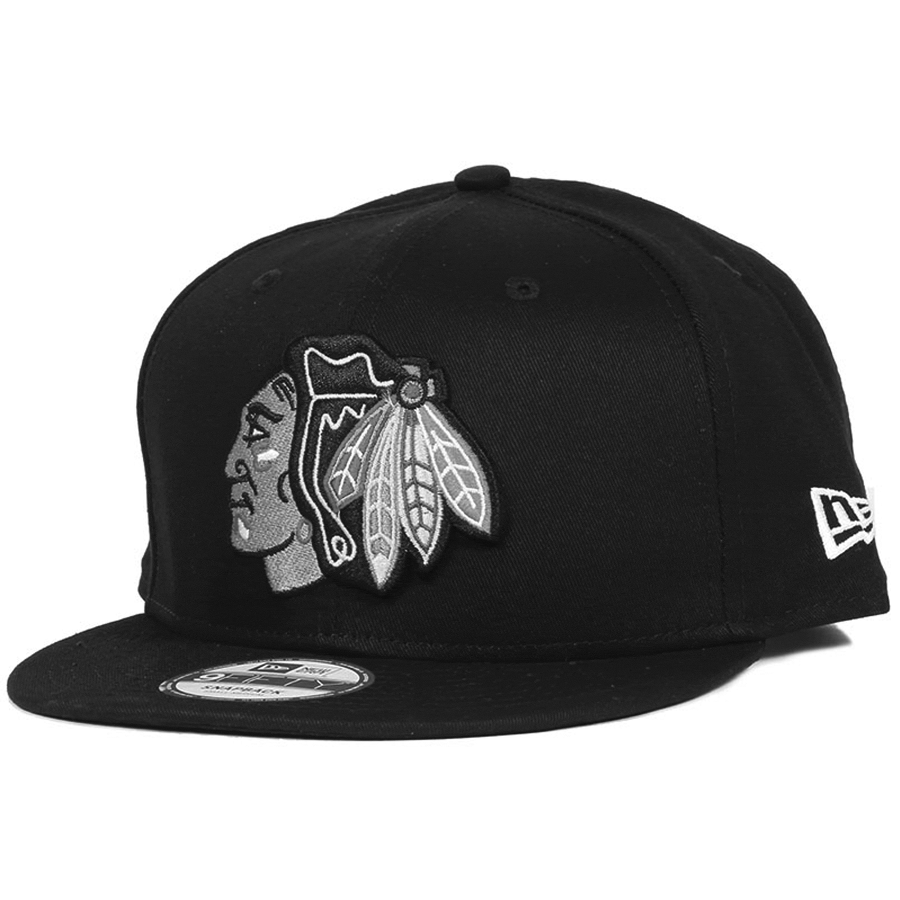 Cheer on the Chicago Blackhawks with this NewEra NHL 9Fifty Black/White Snapback Hat. Designed with a structured fit and an adjustable closure, it makes sure fans can be comfortable and stylish. With a streamlined monochrome look, it keeps fans looking fresh while showing off their team pride.