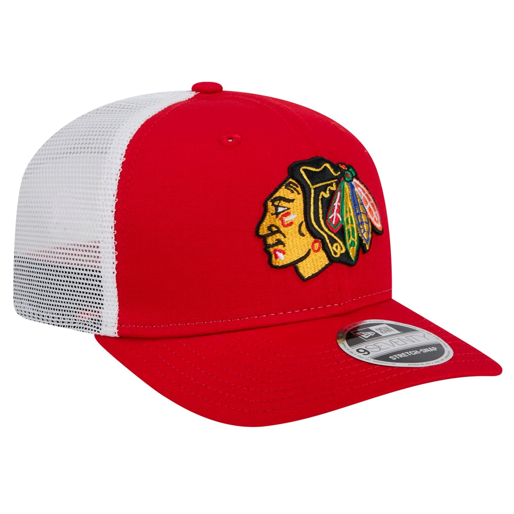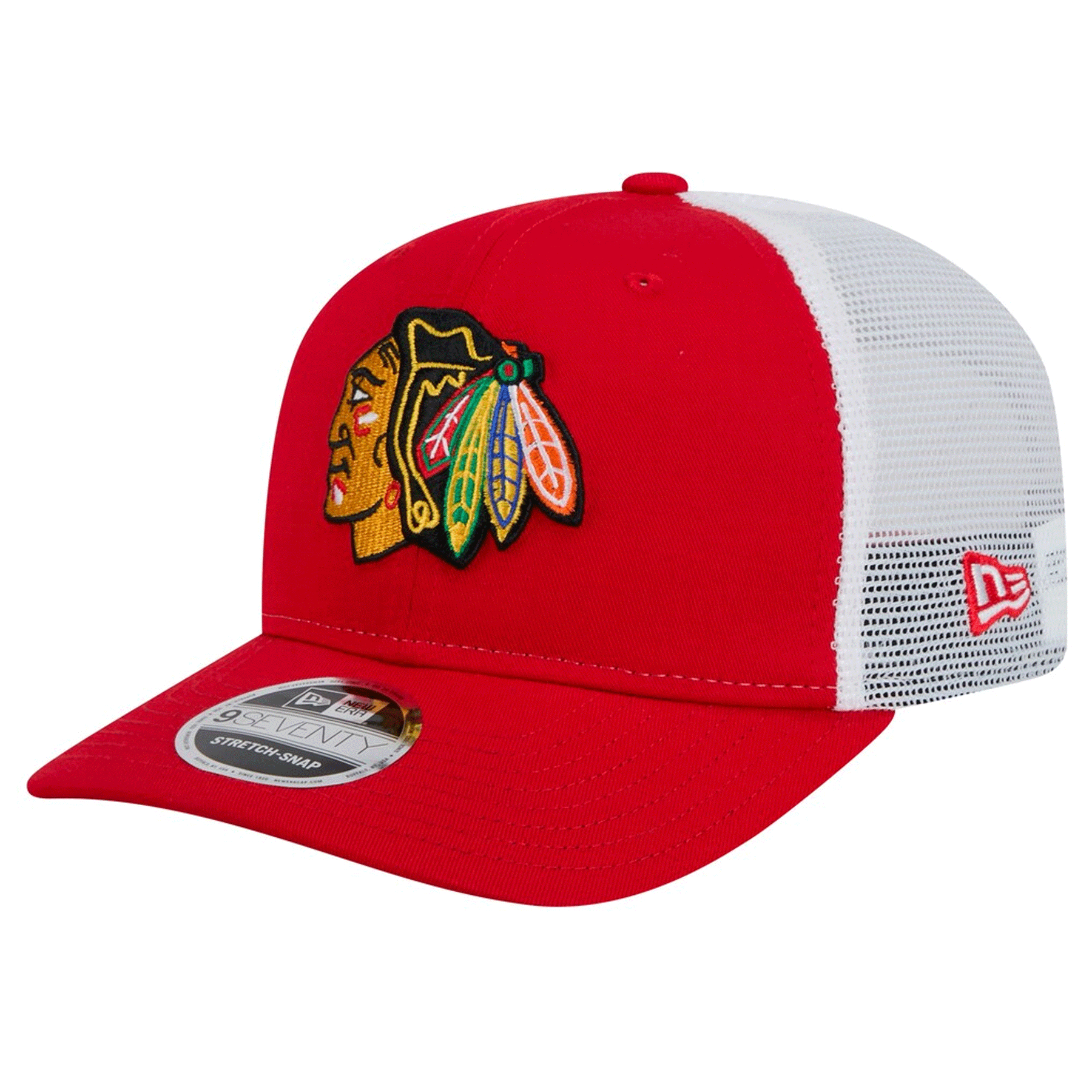 Complete your Chicago Blackhawks game day look with this NewEra NHL 9Seventy Team Color Meshback Hat. The structured crown and slightly curved visor provide a modern and stylish look, while the stretch sweatband ensures a comfortable fit. With its embroidered team logo on the front mesh side and rear panels, this hat is perfect for showcasing your team pride.