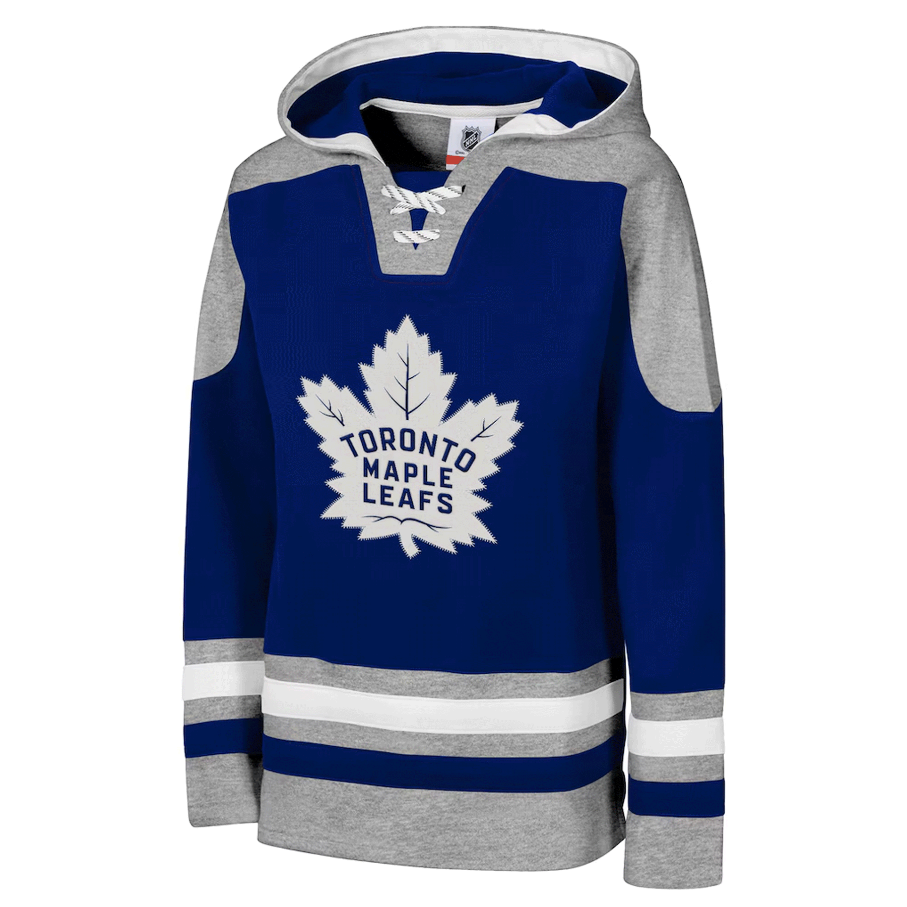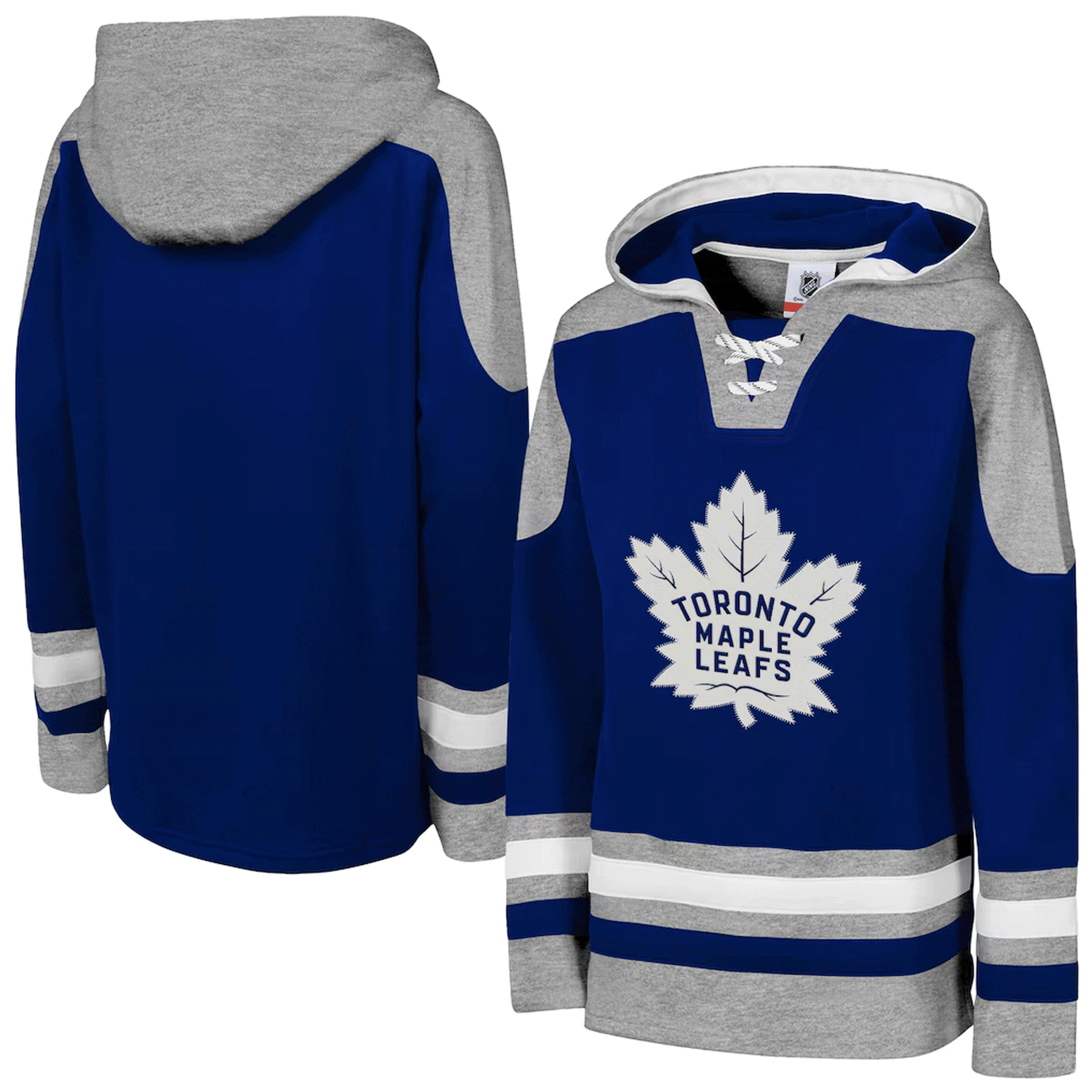 Dress your young Toronto Maple Leafs fan in classic style with this Outer Stuff NHL Ageless Must Have Hoodie. This midweight hoodie is perfect for moderate temperatures, featuring a lace-up V-neckline and contrast hood lining for a stylish touch. Embroidered appliques and sewn-on stripes on the sleeves create a unique look that celebrates the Toronto Maple Leafs.
