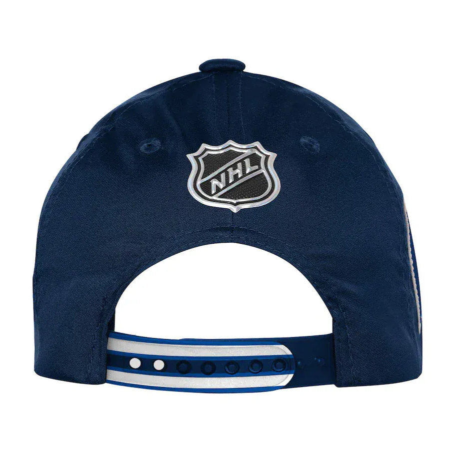 The Outer Stuff NHL Draft Podium Youth Hat is the perfect hat for your young Jets fan. An adjustable back strap allows the hat to fit most comfortably through growing years, and the rubber applique Jets logo on the side of the hat adds extra style.