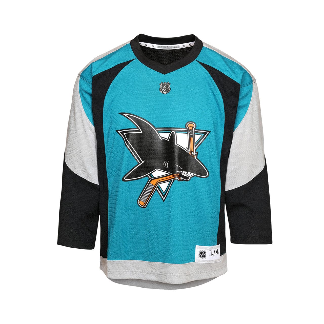 The Outer Stuff NHL Junior Alternate Jersey the San Jose Sharks' legendary 35th anniversary while featuring rising star Macklin Celebrini. Crafted for young hockey fans who want authentic team spirit, this alternate jersey delivers vibrant graphics and comfortable fit for game days or casual wear. Perfect for showing your Sharks loyalty in style.