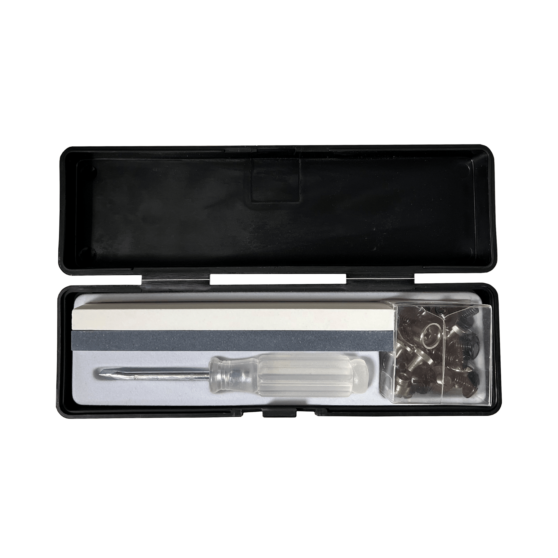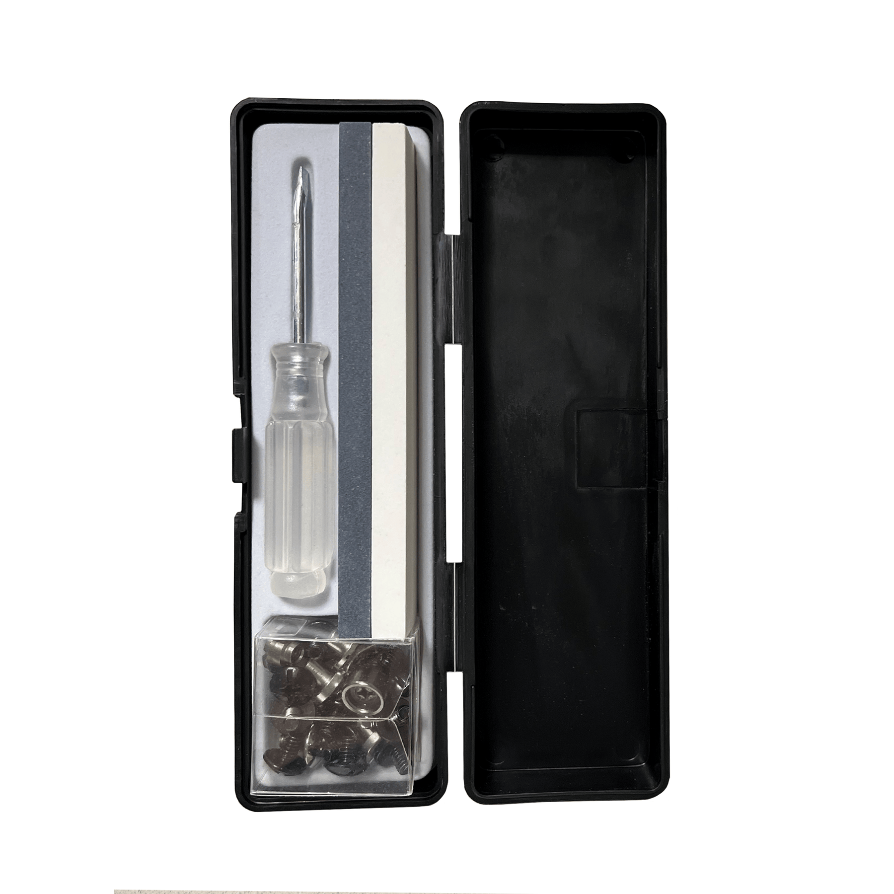 Never let a loose screw or dull edge be the reason you can't get on the ice! The SFS Hockey Repair Kit comes with everything you need to get off the bench and back in the game! This kit comes with 2 honing stones ( one fine and one coarse), assorted screws, screw, and a carrying case.