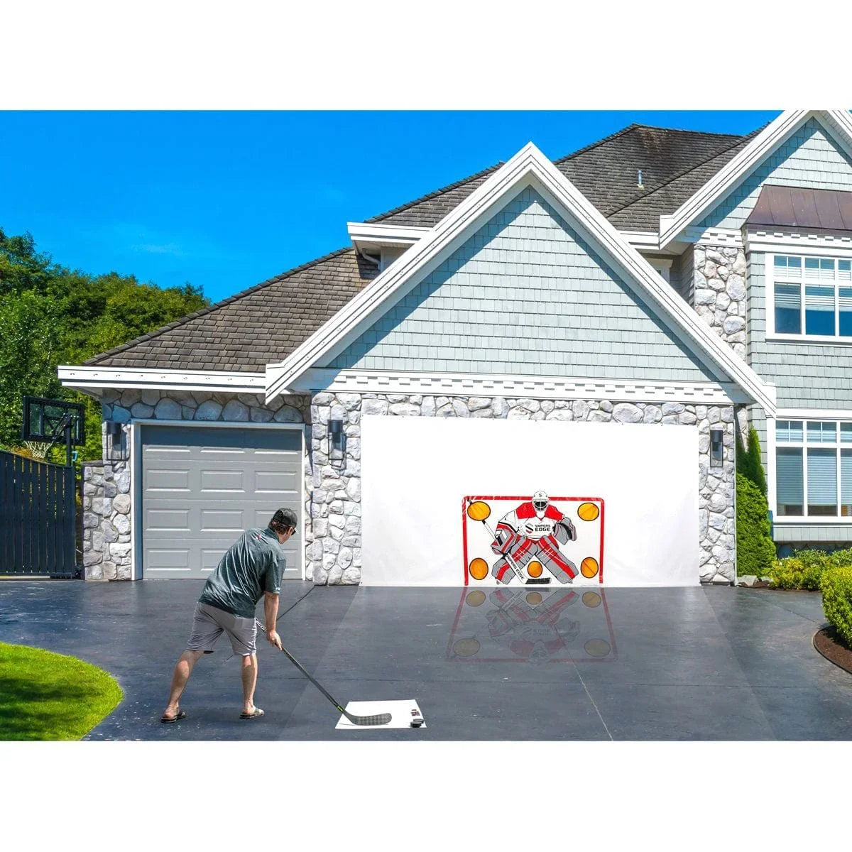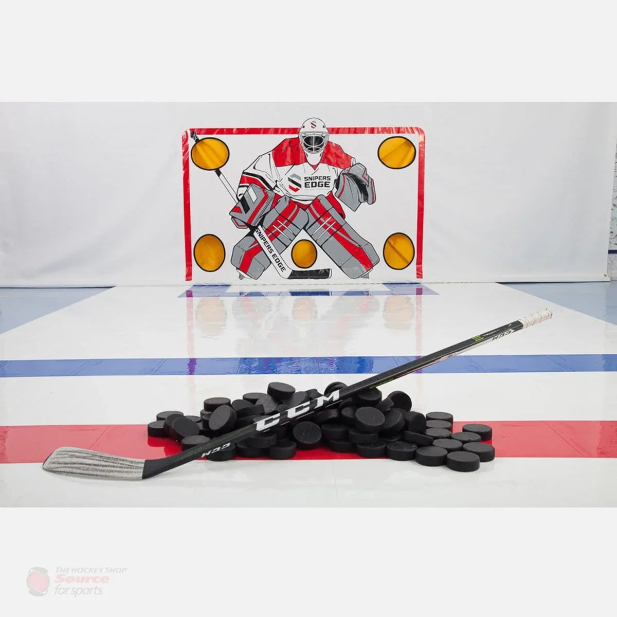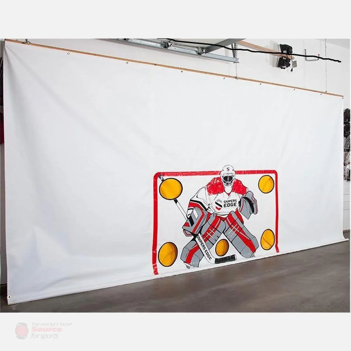 Best price guaranteed.The Snipers Edge Hockey Shooting Tarp is a hockey players (and parents) dream come true. No more: holes in sheetrock, broken windows, puck marks on walls, dented garage doors, or pucks ricocheting off the cross bar. With the Sniper’s Edge Shooting Tarp you can practice your shots without worrying about damaging the house.