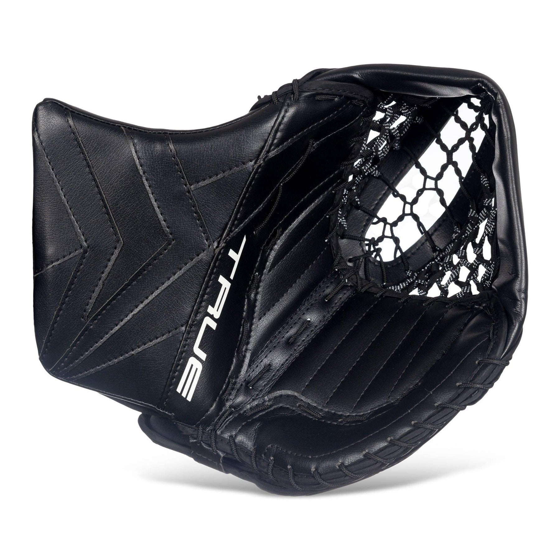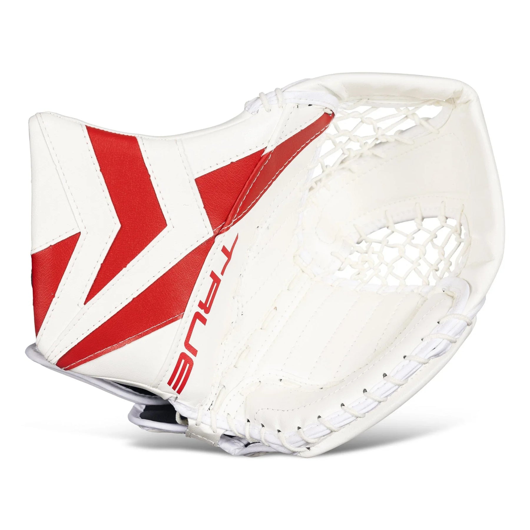 Continuing on with the Catalyst goal collection, TRUE has came out with the 7X3 catcher. With a cuff thumb providing goaltenders with protection and support, a double T pocket for more absorption, and suregrip palm material that provides goaltenders with a durable and reliable palm that doesn't break down as easily.