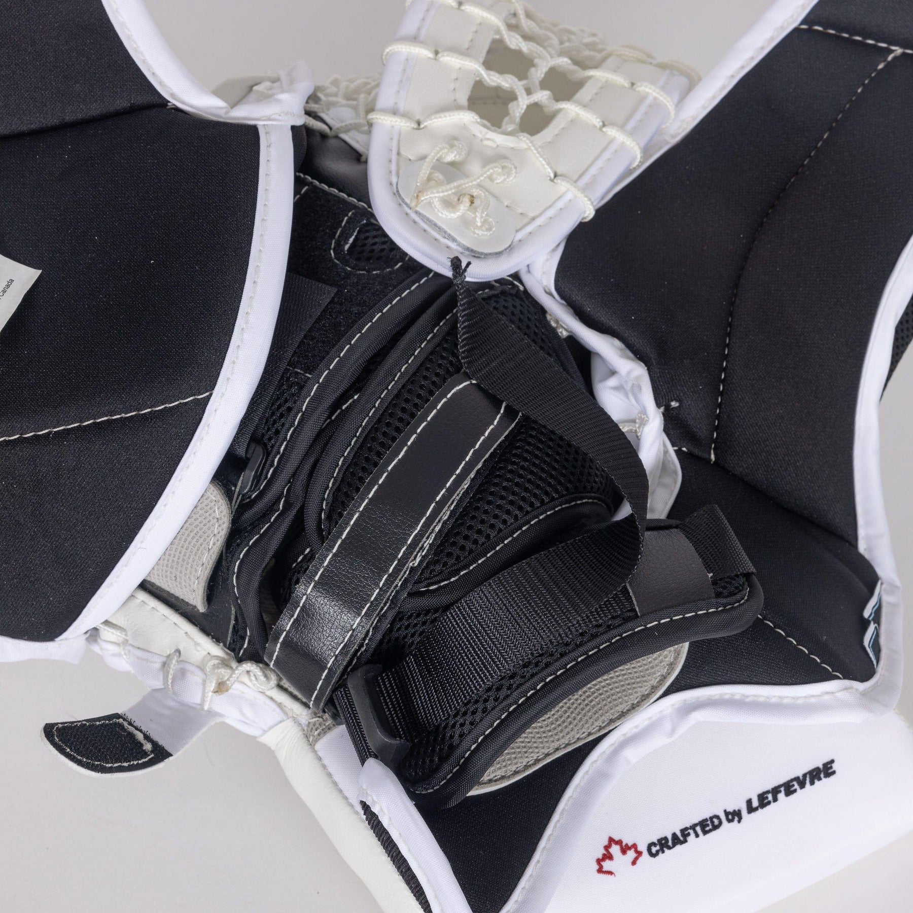 Next you want to ensure the adjustable wrist strap goes directly across the wrist bone, and has minimal to no interference with your chest protector. The goaltender should be able to swivel their wrist to accommodate a range of save selections without any restrictions from the chest protector.