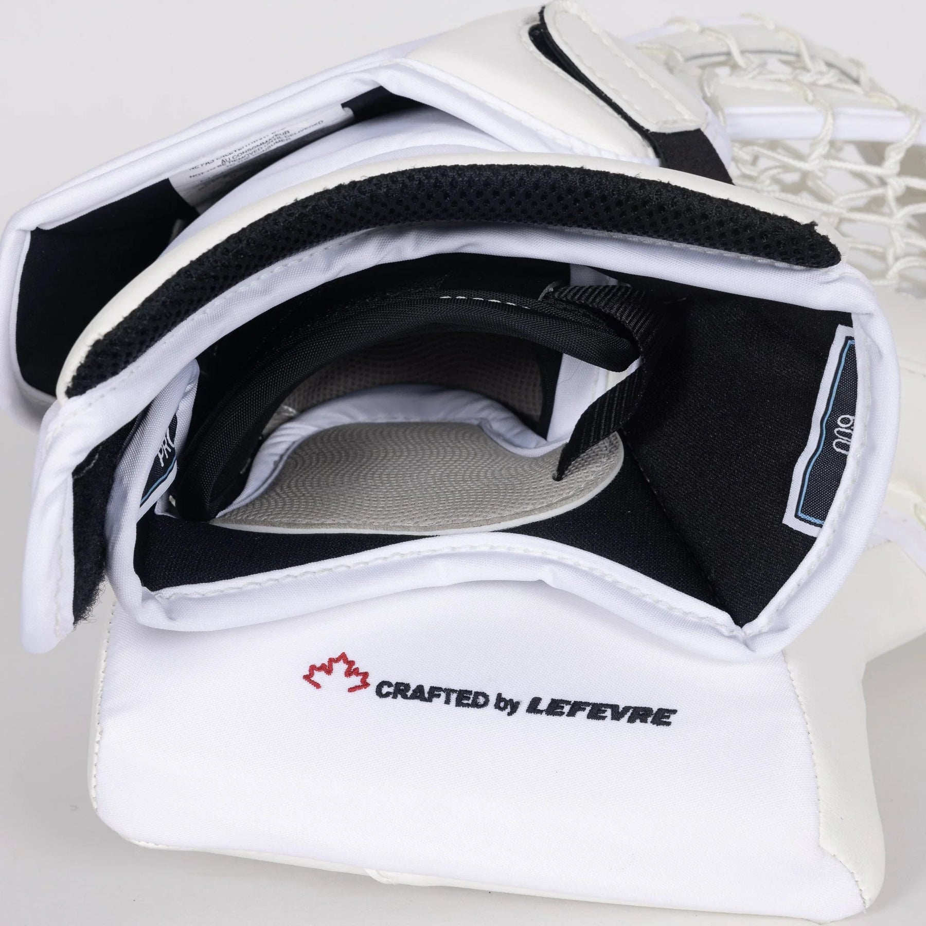 It is important to make sure the palm lines up properly within the catching glove, so that it can be closed without excessive force. New goalie gloves will be difficult to close initially, but through either a standard break-in process, or "baking" the catcher with our in-house convection skate ovens, they will soften over time.
