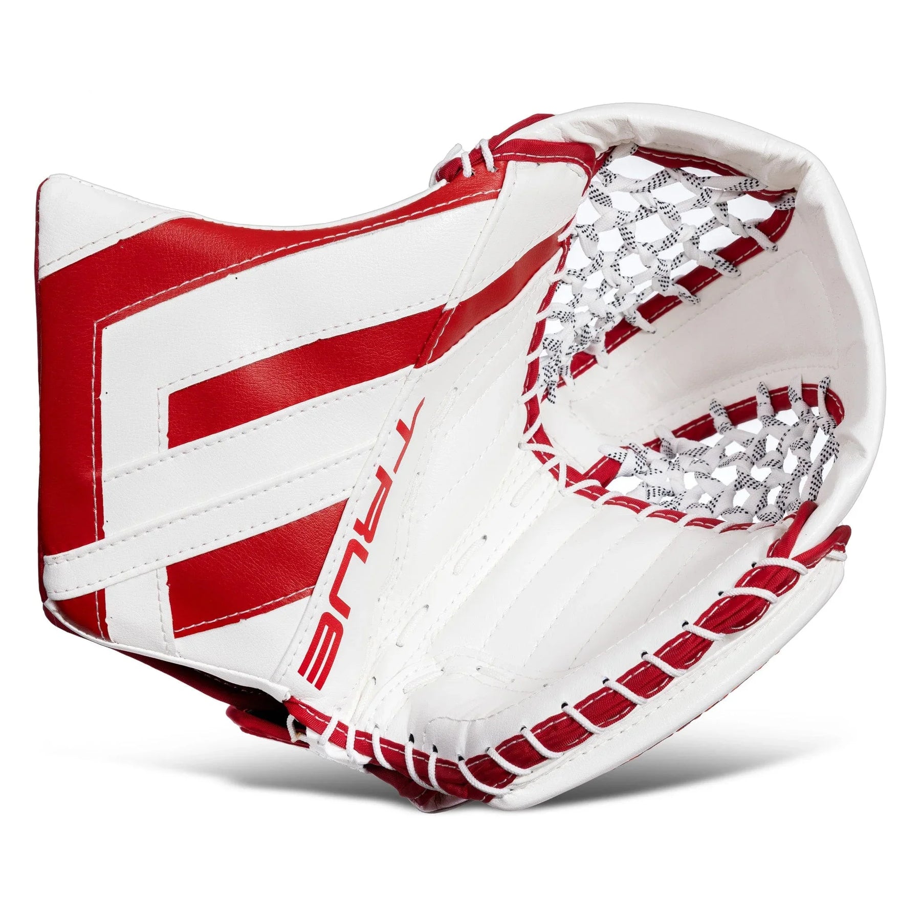 The TRUE HZRDUS 7X4 Intermediate Goalie Catcher is available in Black, White, White/Black, White/Red, and White/Royal. Additionally the White colorway comes with the option for a full-right catch hand.