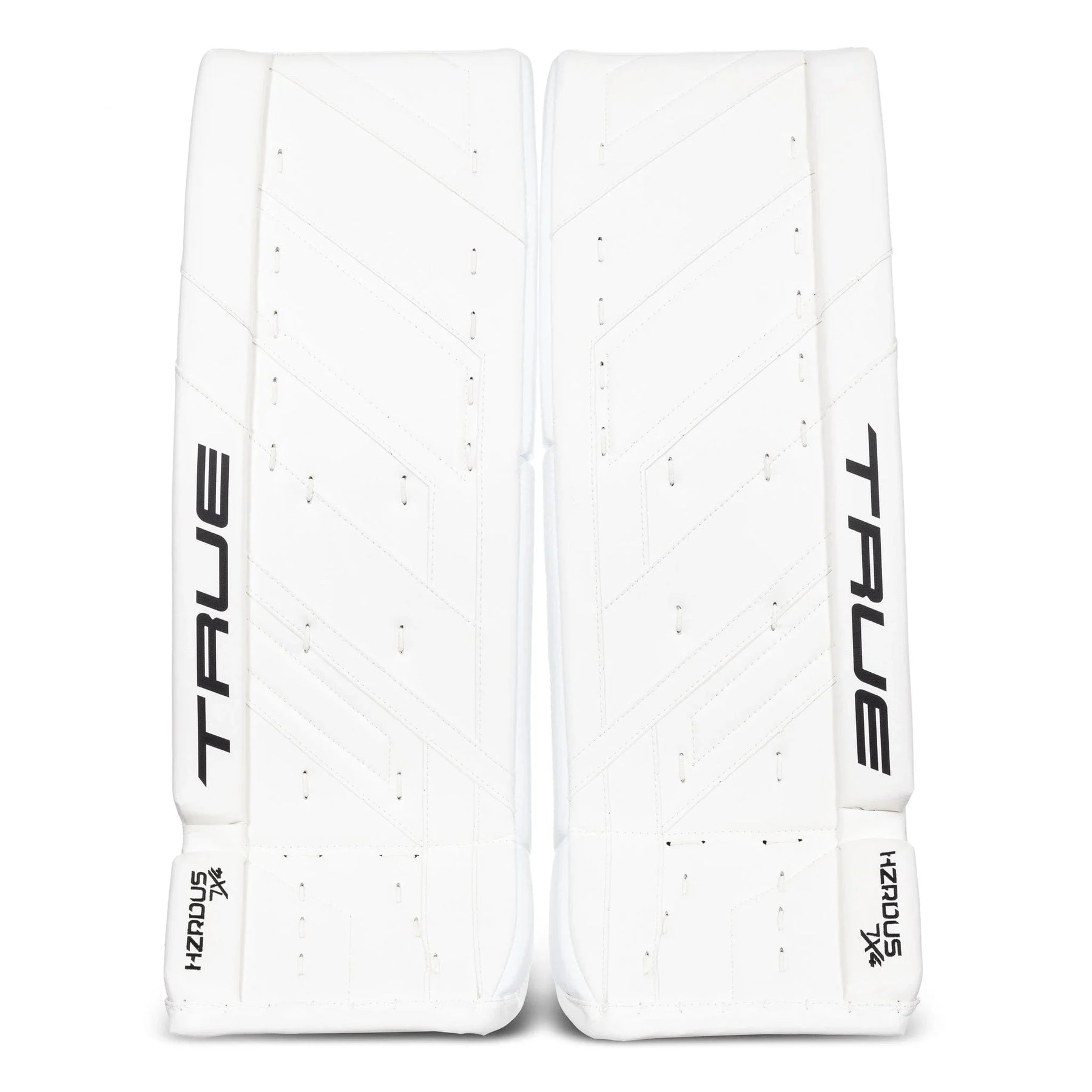 The TRUE HZRDUS 7X4 are an evolution of the L20.2 pads. The HZRDUS 7X4 pads are built to offer an elite balance of performance and affordability with a composite-reinforced thigh rise and a stiff, flat face build. It features many of the same technologies and materials found within the HZRDUS goalie gear, offering goalies competitive performance in a game-ready package.