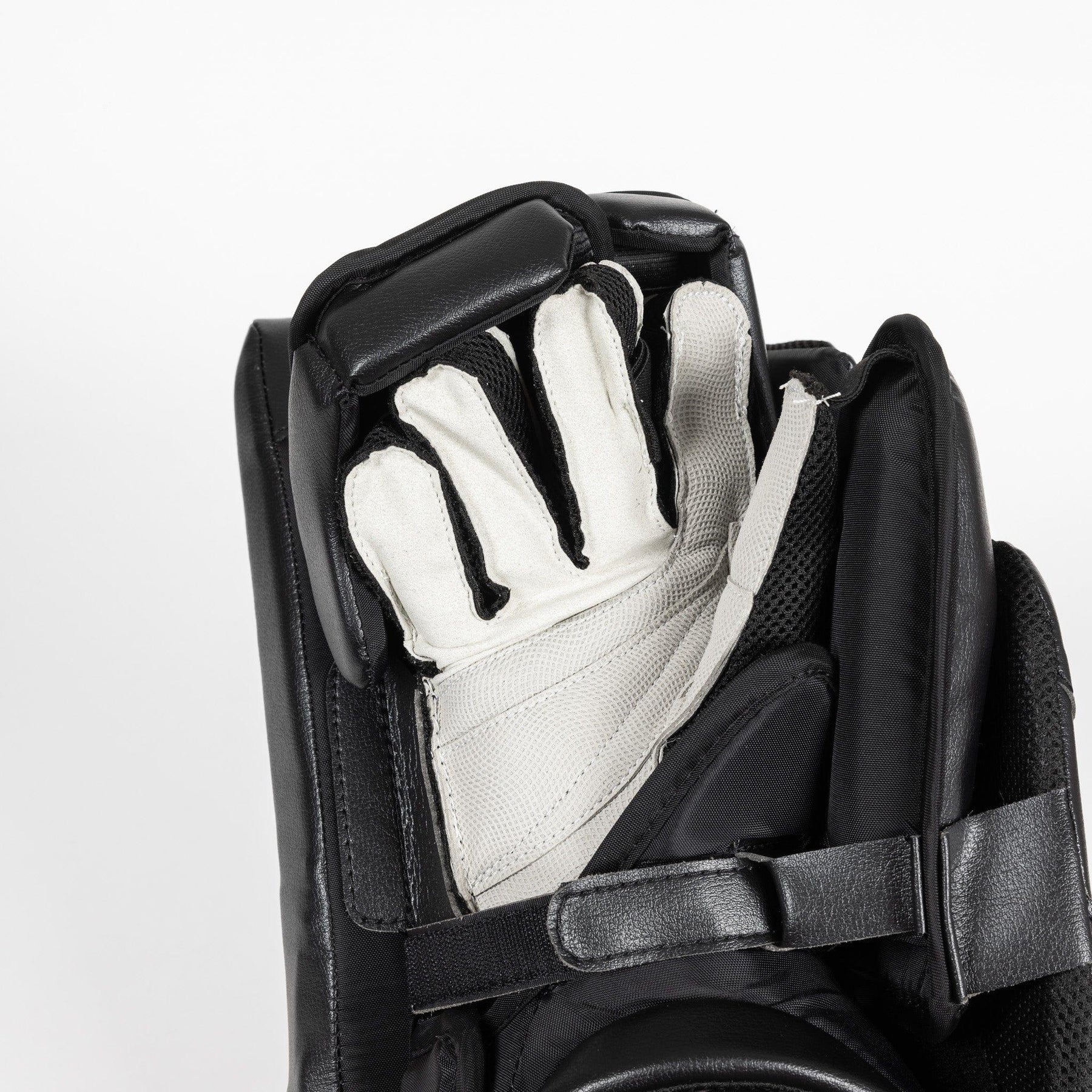 To protect the fingers, we see the integration of a straight index protection. The finger protection runs with the blocker sidewall, protecting the fingers but not interfering with the stick usage. This not only allows goalies to feel protected from the toughest impacts but also allows them to play with more confidence.