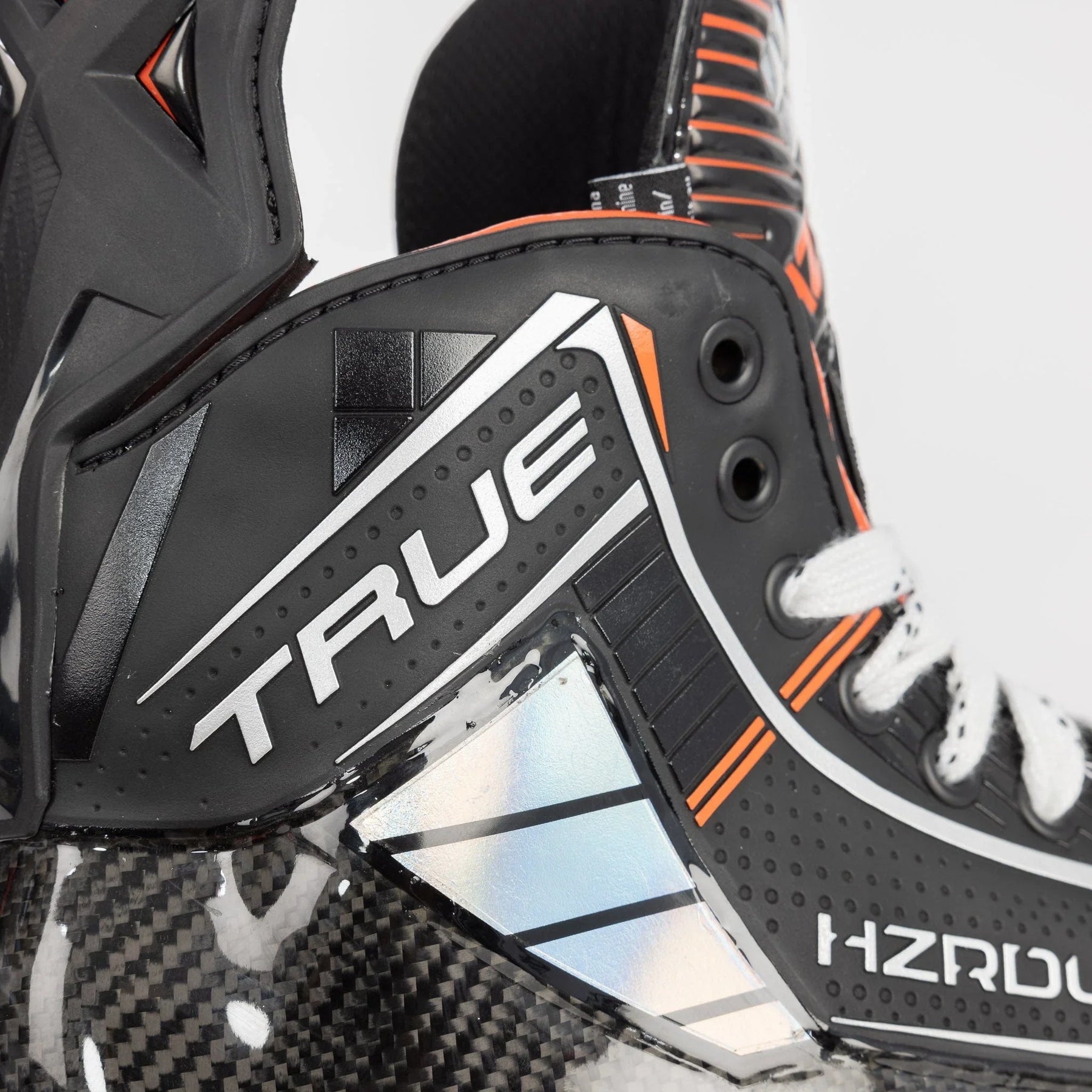 The CARV toe cap debuted in TRUE’s CAT9 skate, and the innovative design continues to be employed in the HZRDUS series. This toe cap boasts sharper edges, a streamlined aesthetic, and lighter construction, all strategically engineered to facilitate rapid transitions and seamless execution of tight turns. By harnessing these enhancements, the skate offers players increased agility and responsiveness on the ice, enhancing their overall performance during play.