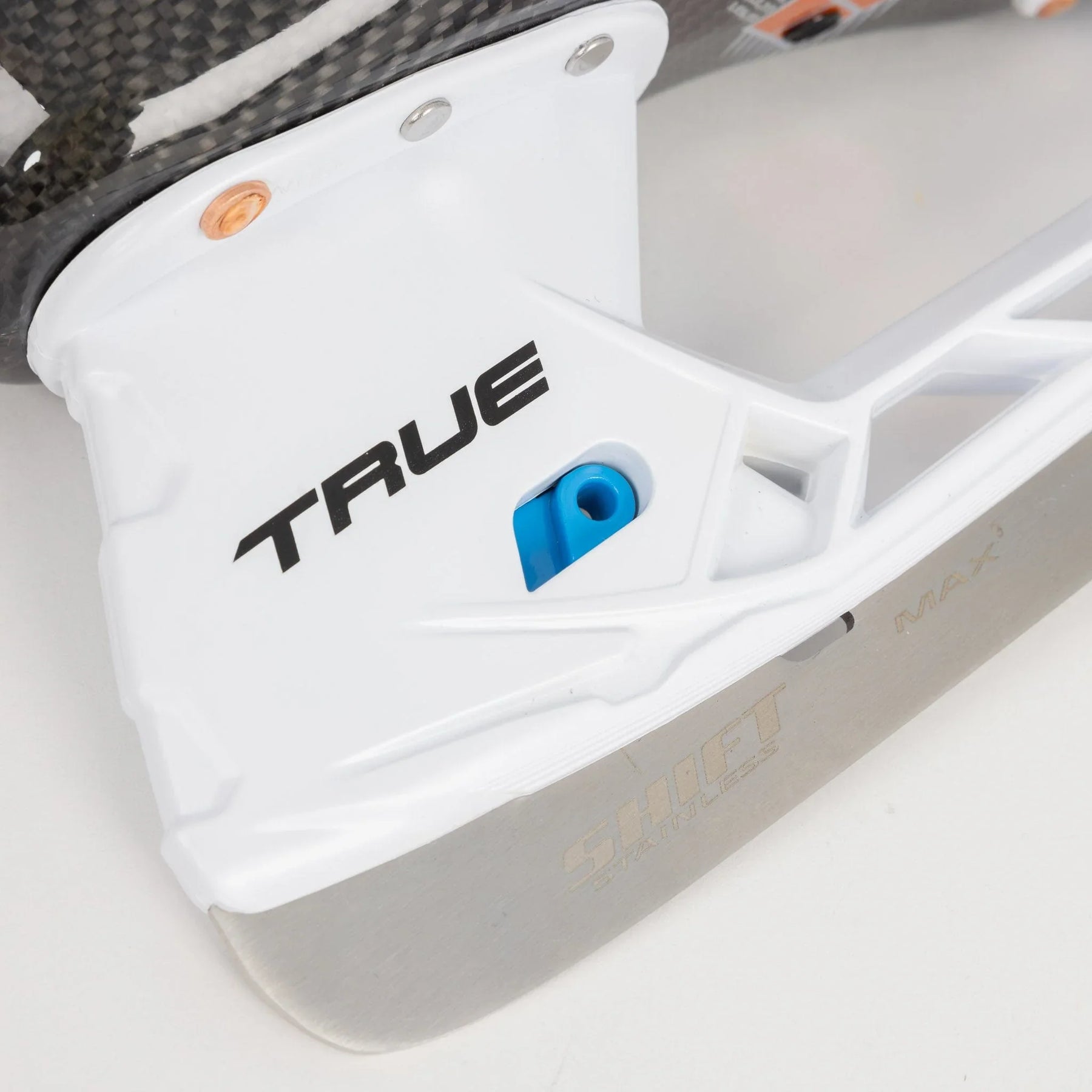 The skate features TRUE’s cutting-edge Shift Max holder, an elite skate holder known for its exceptional design that significantly reduces weight by 40g. Additionally, the holder incorporates BenchChange Technology, providing players with the convenience to quickly switch out runners when needed, offering adaptability on the fly. Complementing this technology is the Shift Max custom blade, meticulously crafted by TRUE and constructed with durable stainless steel, further enhancing the skate's performance and overall value.